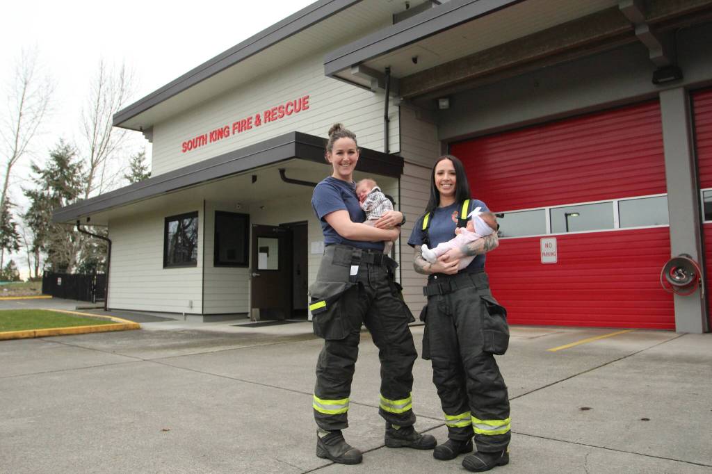 Just a few months ago, South King Fire and Rescue (SKFR) Lt. Ann Hoag and Firefighter Amanda Weed posed for a photo wearing bunker gear in front of an engine at Station 63. They each held up an ultrasound photo, bellies rounded.