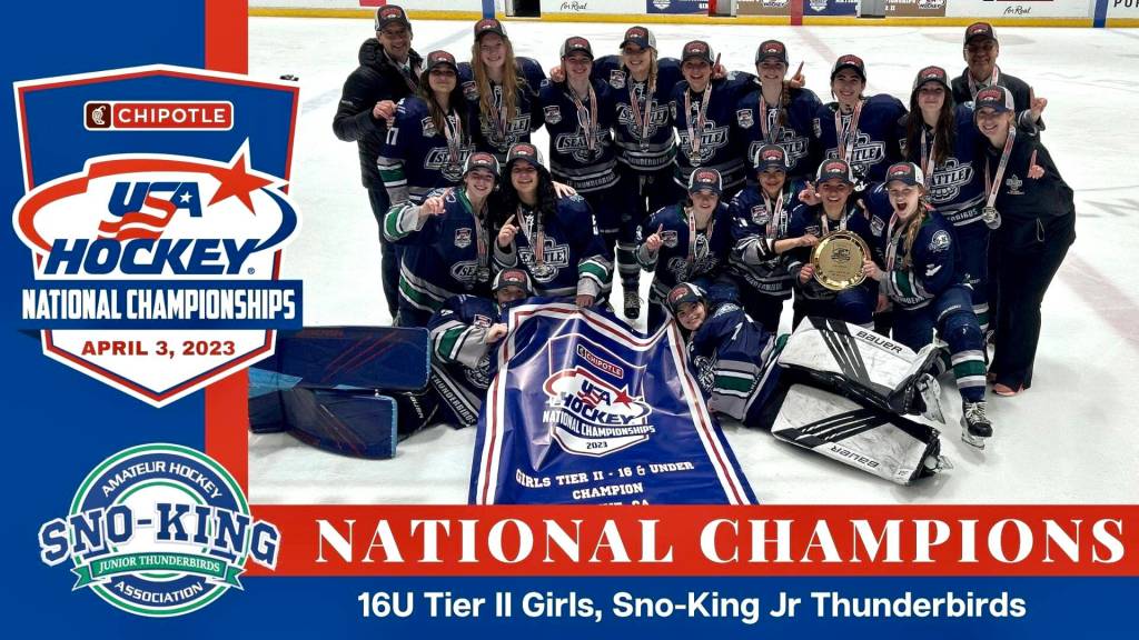 Only three years after its debut, the Sno-King Junior Thunderbirds 16-and-under (16U) girls hockey team became the first of its division in Washington state to attend the national championship — where the team also became the first girls’ hockey team from Washington state to win the entire competition.