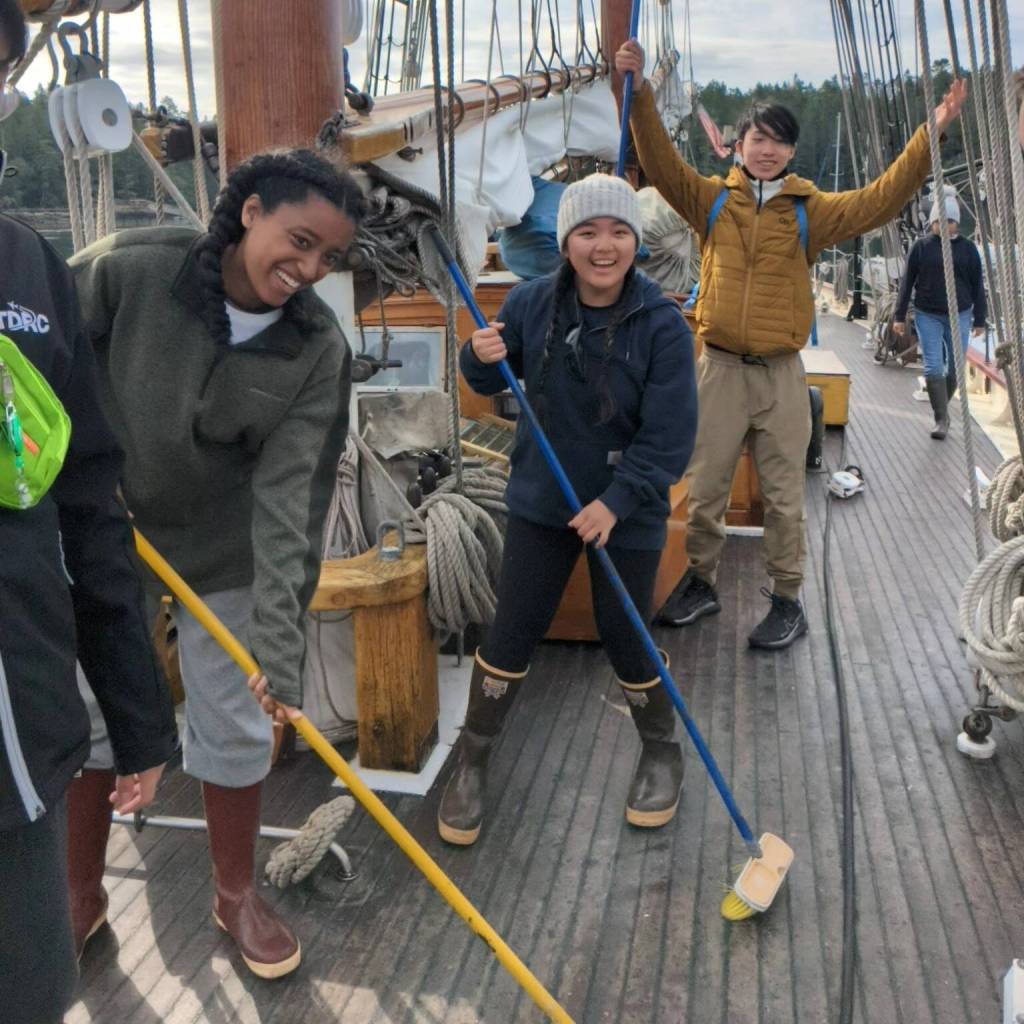 Students had the chance to draw open the sail, climb the mast, navigate at night using landmarks, learn about the marine ecosystem and changing climate conditions as part of the experience.