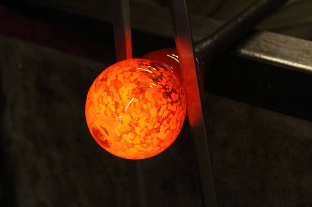 “You never want to into the furnace cold,” said Mays as he worked on a glass ball.