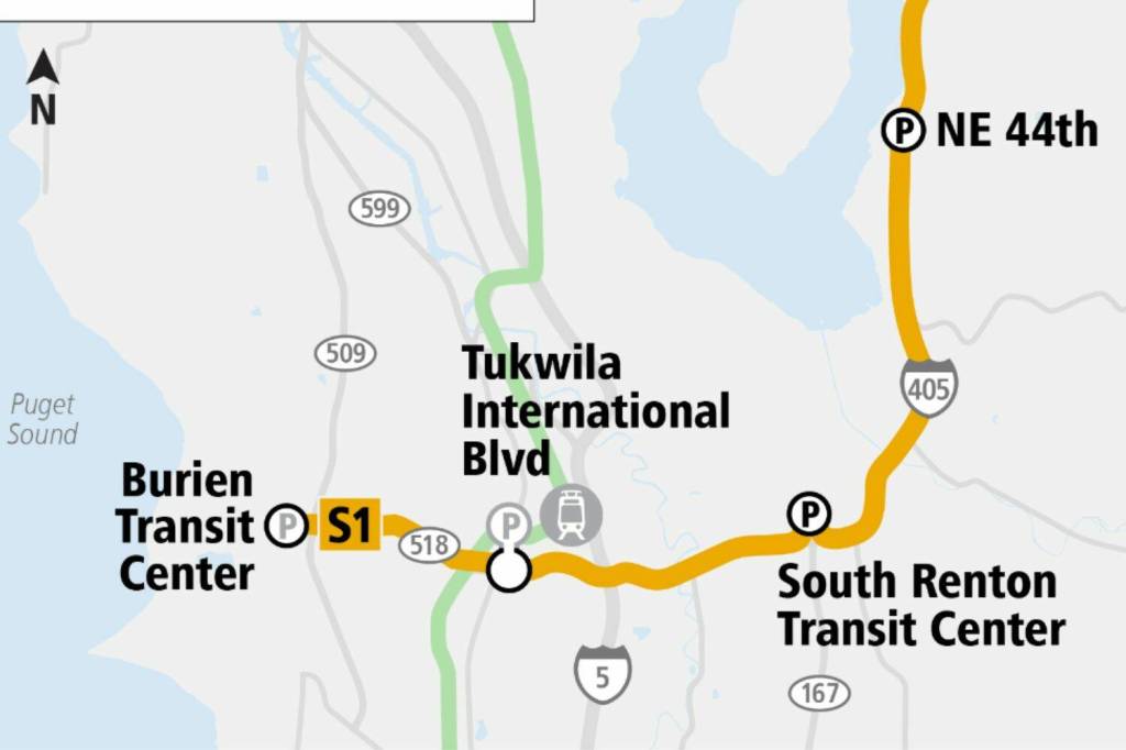 Both stations are along the planned Stride S1 Bus Rapid Transit line, which will run every 10-15 minutes along SR 518 and I-405 between Burien and Bellevue. The line will feature the agency’s first battery electric buses.