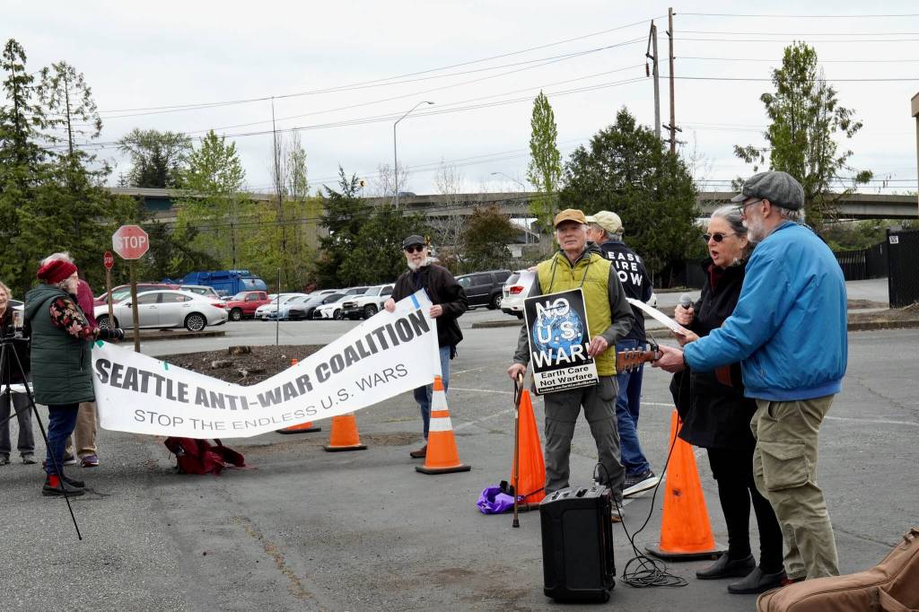 At the Renton protest, the 20 attendees represented various related groups, such as Earth Care Not Warfare, Veterans for Peace, Washington Physicians for Social Responsibility, Renton Education Association, and Ground Zero Center for Nonviolent Action.