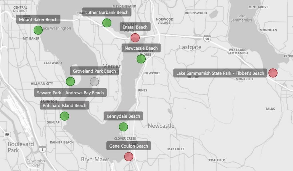 According to the King County website, water testing at Gene Coulon Beach — the most southern swimming beach in Lake Washington — shows that bacteria levels are high at 550 bacteria per 100 milliliters of sample water as of Monday, June 10. Due to these high bacteria levels, the county says that people — and their dogs — should stay out of the water.
