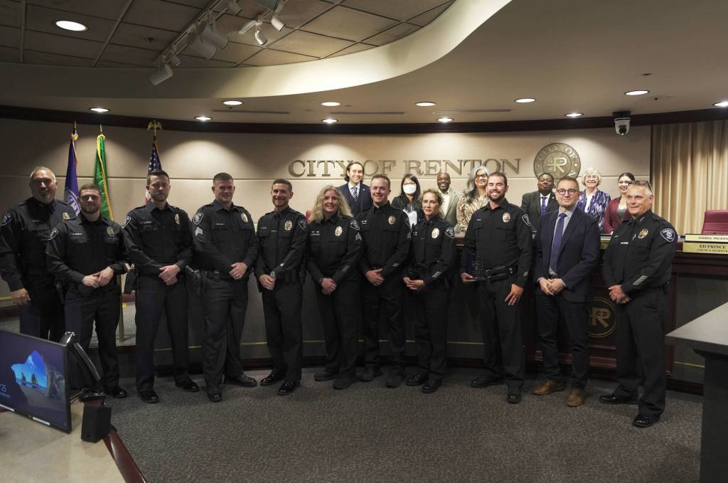 At the July 1 council meeting, Renton Police Chief Jon Schuldt awarded three officers with the “Life Saving Medal,” another four officers were promoted, and one officer was awarded Officer of the Year.