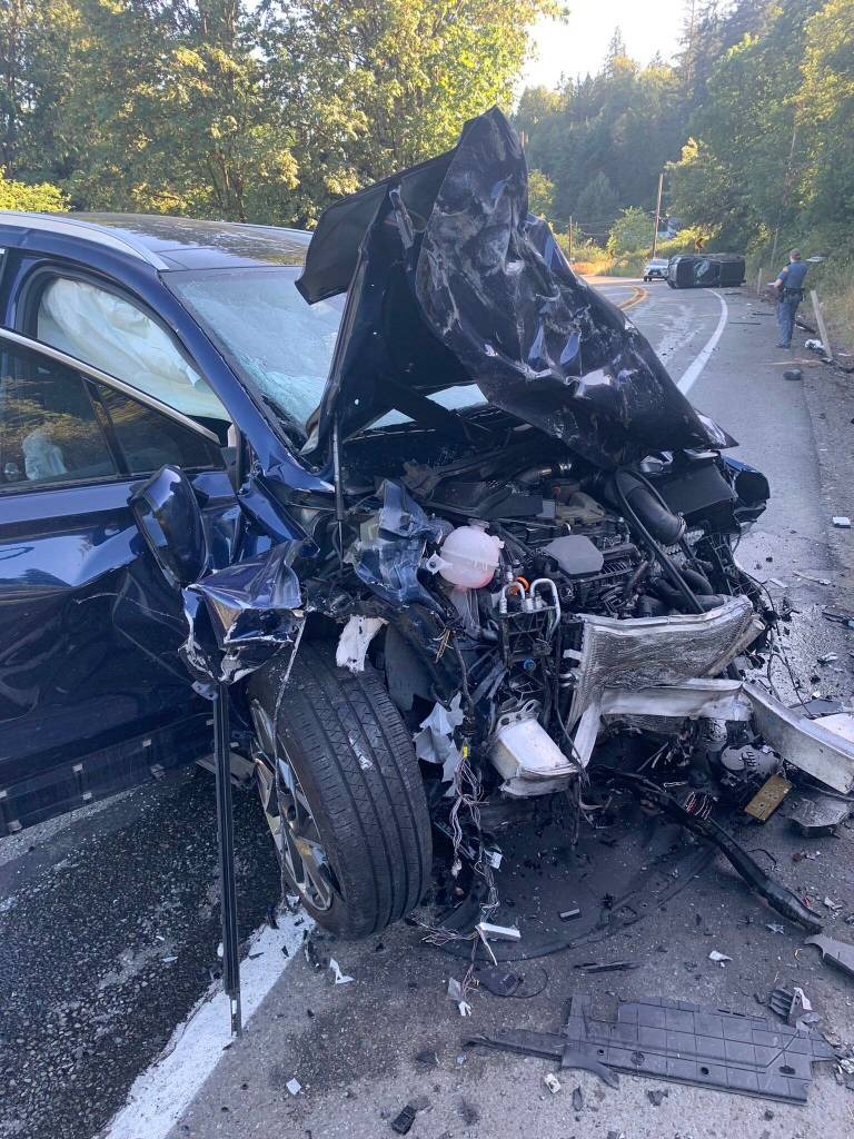 The 24-year-old’s vehicle was propelled eastbound partially in the westbound lane where it struck the vehicle of a 51-year-old Federal Way woman, pushing it into a ditch where it rolled and arrived at a stop on its side in the westbound lane.