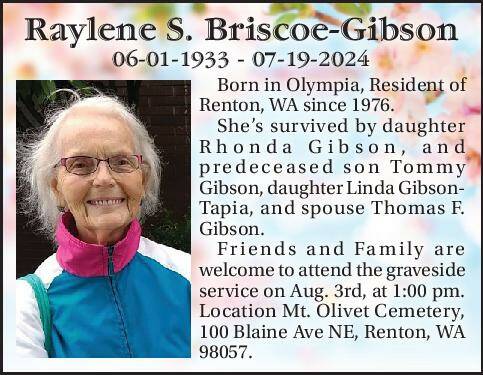 Friends and Family are welcome to attend the graveside service on Aug. 3rd, at 1:00 pm. Location: Mt. Olivet Cemetery, 100 Blaine Ave NE, Renton, WA 98057.