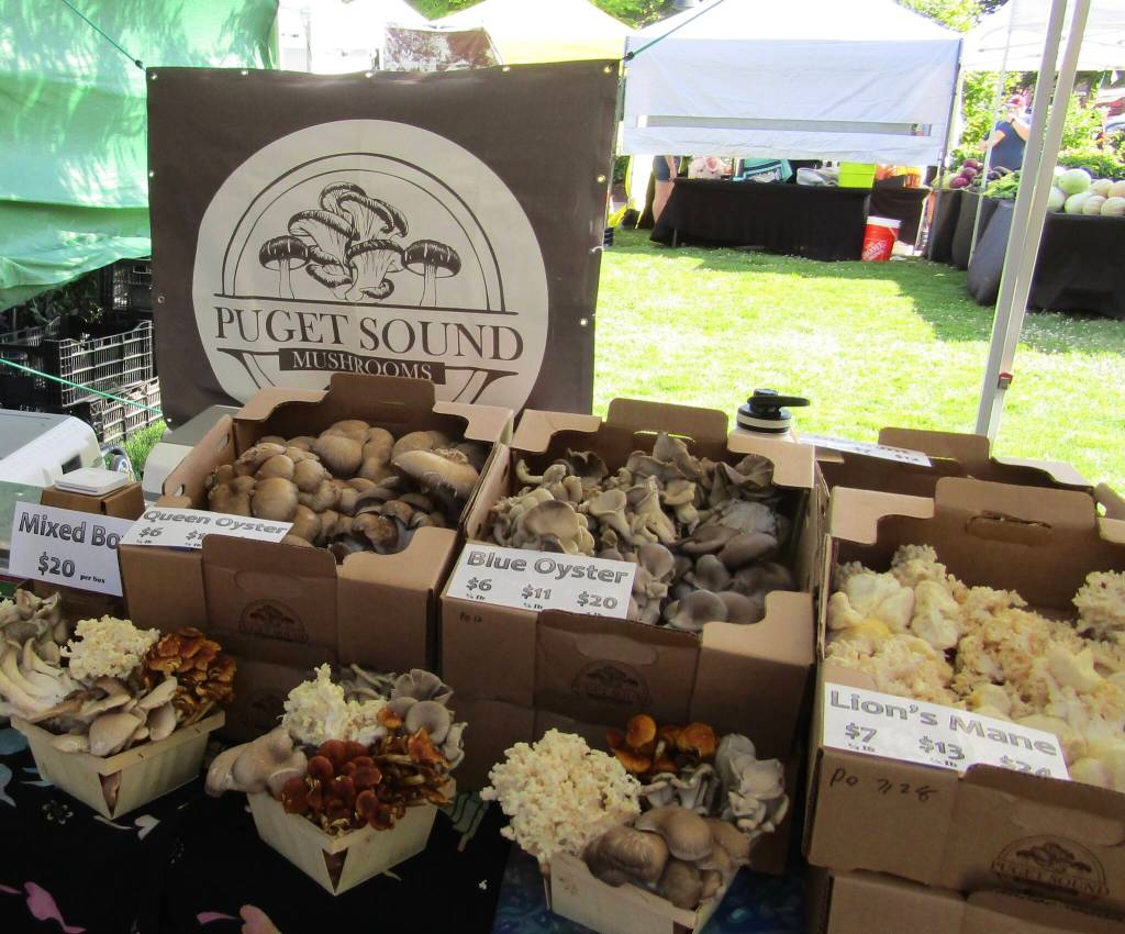 Puget Sound Mushrooms, the only business solely selling fungi at the Renton Farmers Market, has a booth there all summer. Puget Sound Mushrooms, owned by Eric Connolly, has been in business for three years and is based in Yelm, WA. It doesn’t have a storefront, but sells at other farmers markets throughout Western Washington.
