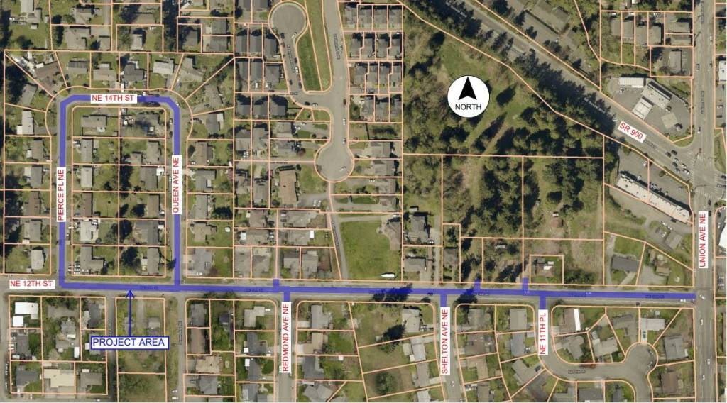 The project will replace the old asbestos concrete water main on NE 12th Street, Pierce Place Avenue, NE 14th Street and Queen Avenue, installed back in 1952, with new 12-inch and 8-inch water mains, according to Jonathan Chavez, Renton civil engineer.