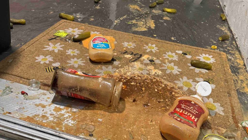 Later that night, at about 2 a.m. June 15, Vega and his husband were sitting on the couch watching a movie when they began to hear banging on their door and glass breaking. Vega said that he opened his front door and found that a variety of putrid-smelling foods in jars and containers had been thrown at his door, creating a mess. In videos Vega uploaded to GoFundMe, multiple masked people are throwing things at their door.