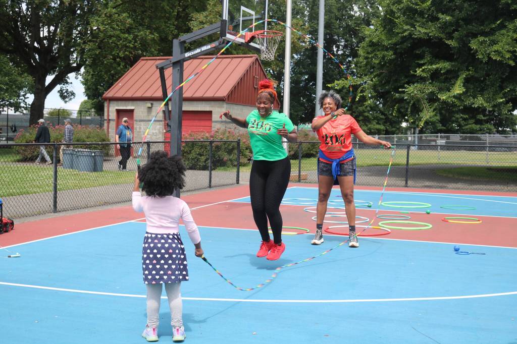 Along with local vendors, artists and artisans, Seattle’s Double Dutch Divas set up jump rope and hula hoop activities at the park’s basketball court, encouraging Juneteenth guests to learn how to play double dutch and get active.
