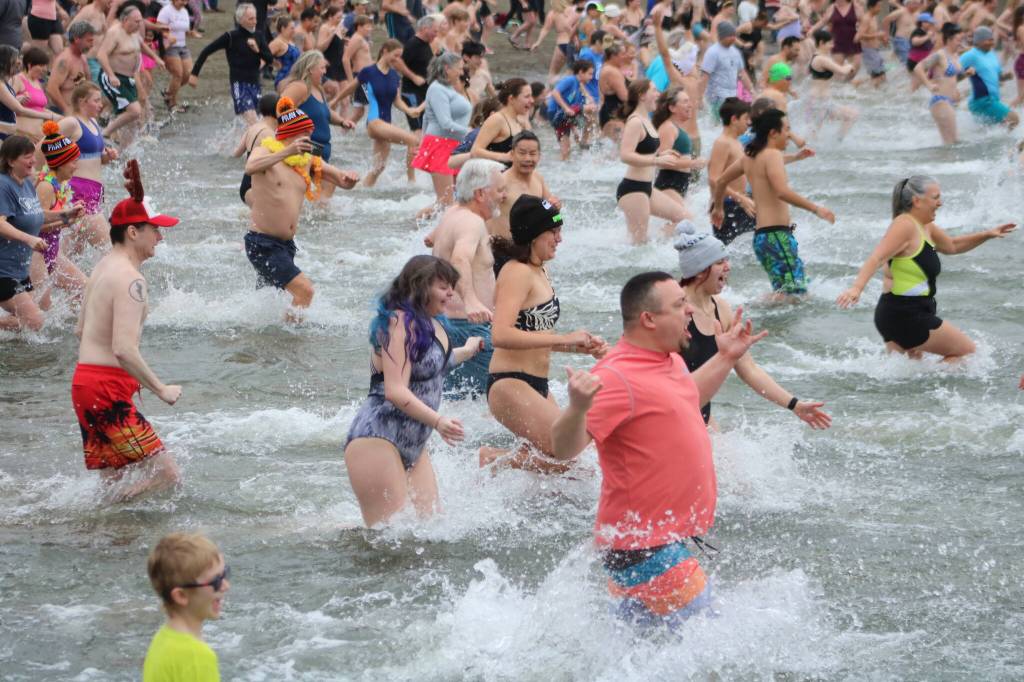 For the 2026 Polar Bear Double Dip, the water was cold, but the camaraderie was warm, as hundreds came out to start off the new year in Renton with two icy plunges.