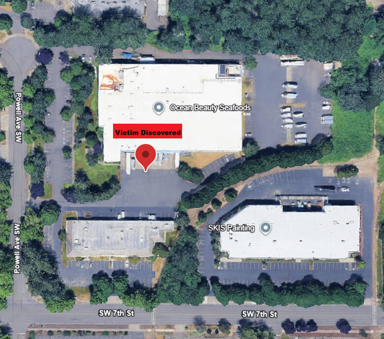 According to the King County Medical Examiner’s decedents list, David Eugene Robertson, 56, died on Jan. 5 as a result of an incident at 600 Powell Ave. SW in Renton that occurred on Jan. 3. According to the medical examiner, the incident that resulted in Robertson’s death occurred outside, his manner of death was an accident and his cause of death was multiple blunt force injuries. The incident appears to have occurred behind Ocean Beauty Seafoods.
