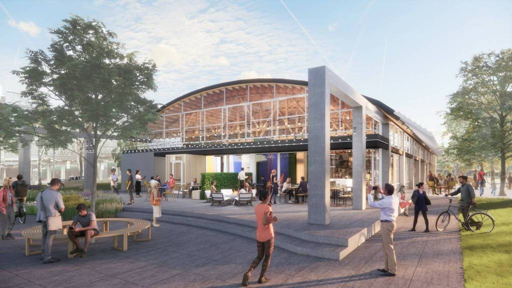 The market building will have 11,783 square feet of indoor market space, with an outside extension space of 1,766 more square feet. The city intends for the market to operate seven days a week with year-round programming to shift the site from an “intermittent, event-based use to a dependable, regularly occupied destination.”