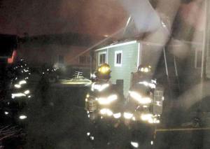 Firefighters had to work off a ladder truck platform to put water on the flames from above and…