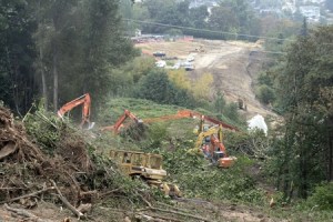 Hillside cleared along I-405; next up is 200,000 cubic yards of soil, new onramp
