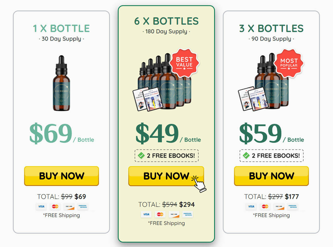 This package comes with 6 Illuderma bottles, with each one costing only $49. It is also considered to be the best deal pack since it offers the most amount of savings.