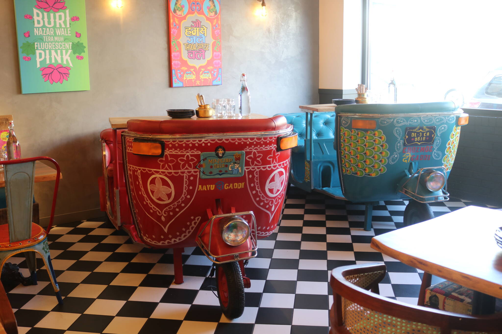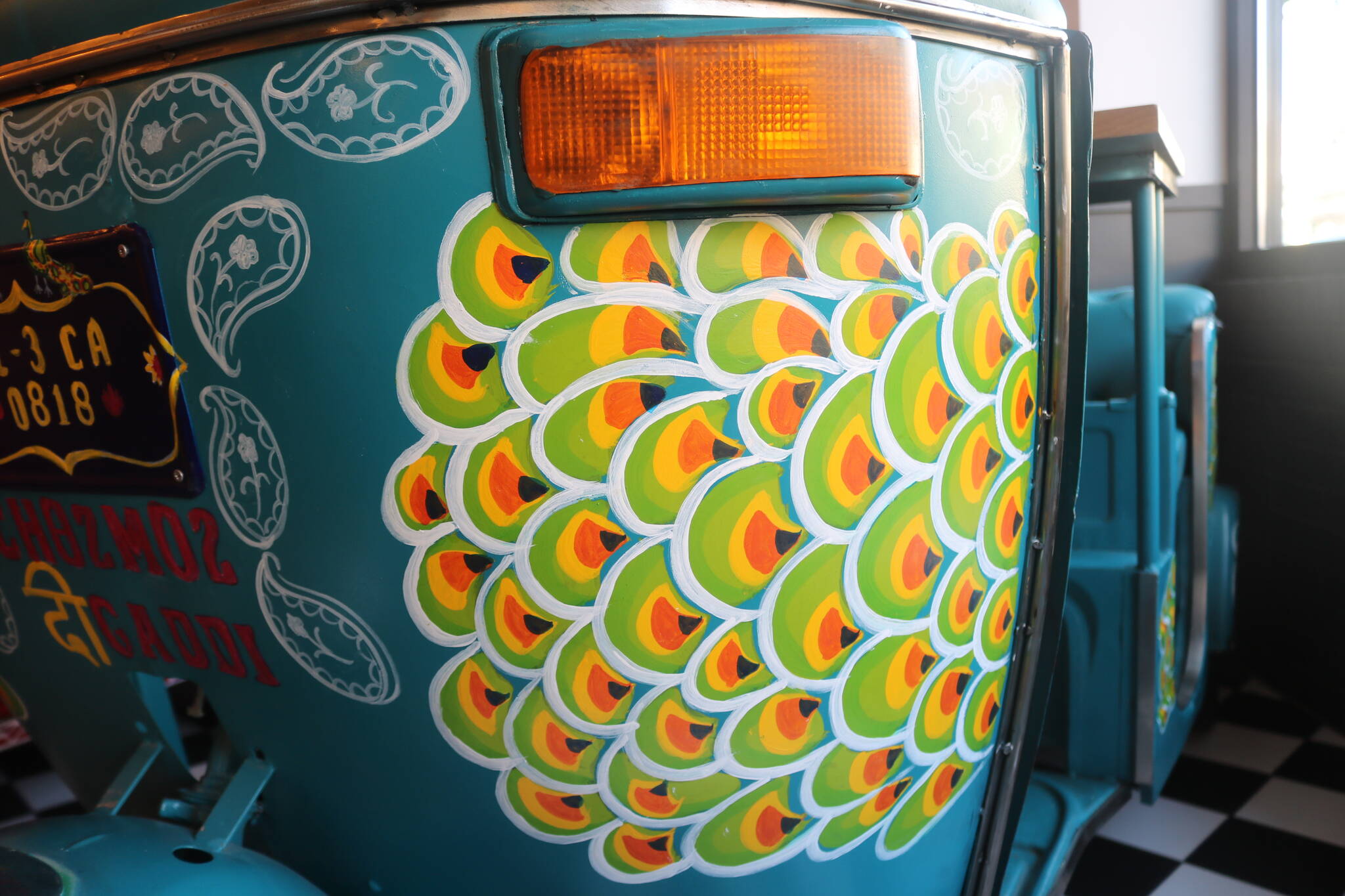 Bindaas’ decor is all designed and specially commissioned by Nandakumar, who had custom furnishings and art created and imported, including two auto rickshaws that have been painted and modified into booths. She said that many of the restaurant’s silverware and serving dishes once belonged to her grandmother and great-grandmother, making the restaurant feel even more inviting and like family.