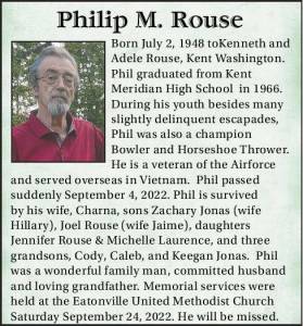 Born July 2, 1948 to Kenneth and Adele Rouse, Kent, Washington. Phil graduated from Kent-Meridian High School in…