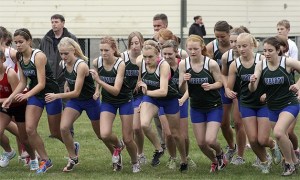 The Liberty girls cross-country team takes off from the starting line Oct. 12 at Mount Si.