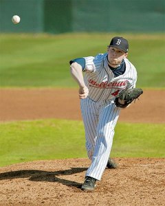 Kyle Swannack throws a pitch earlier this season. Swannack finished the season with a1.53 ERA and will pitch for WSU next year.