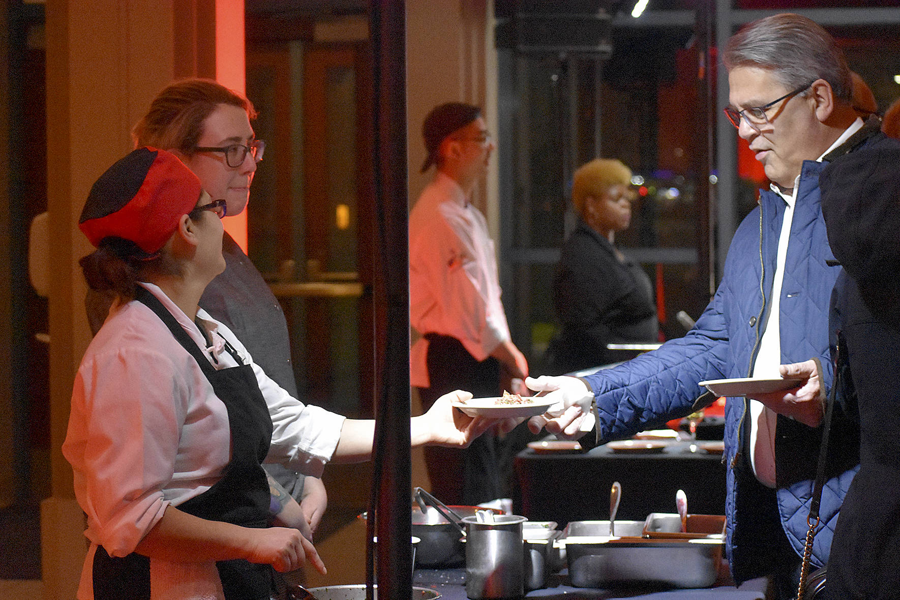 Renton Technical College got a tasty start to the new year with the 2020 Celebrity Chef event, that featured a Lunar New Year performance of the Lion Dance from The International Lion Dance and Martial Arts Team, Jan. 28. Guests also had appetizers made by RTC students and a multicourse meal from Chef Angie Mar with the help of students. Advanced Sommelier Christopher Chan was the emcee and helped pair the courses with different wines.