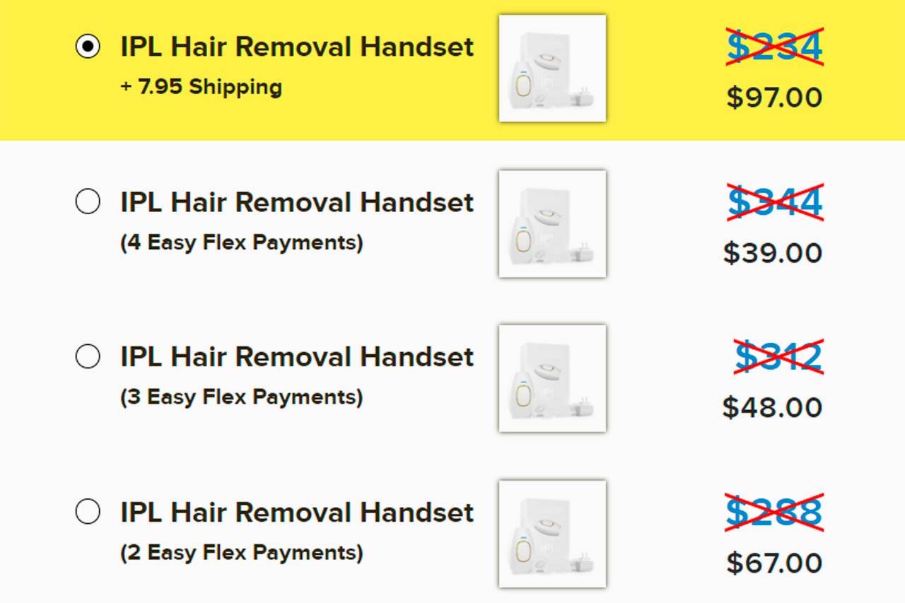 - IPL Hair Removal Handset + Safety Glasses in 2 Easy Flex Payments of $61.0