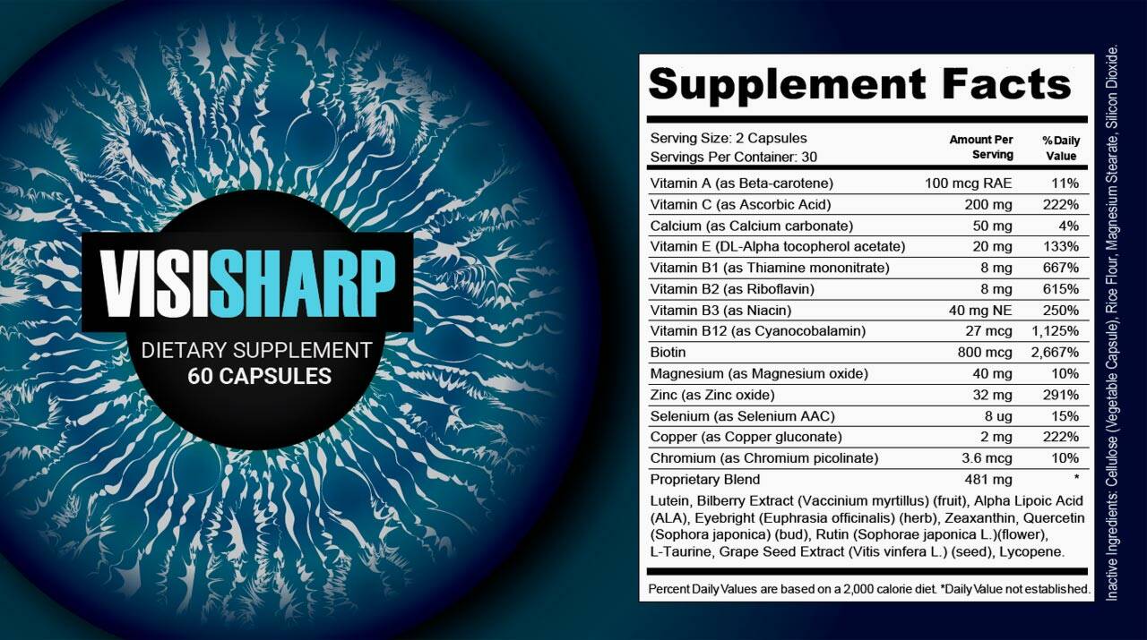 VisiSharp is an organic formula that promotes eye functions. It is a dietary supplement created by a reputed company known for producing many health-promoting products in the past. It comes in a pack of 60 capsules which will be enough for 30 days; taking two capsules per day. VisiSharp contains all-natural ingredients, meaning it has no synthetic additives or fillers and does not contain any harmful chemicals.