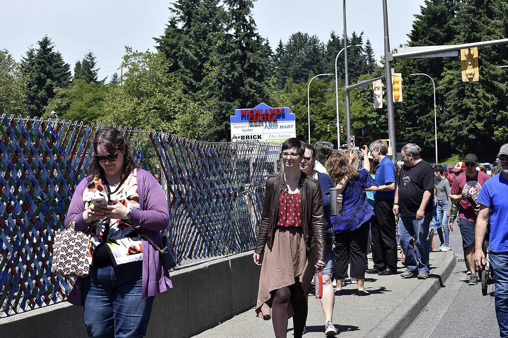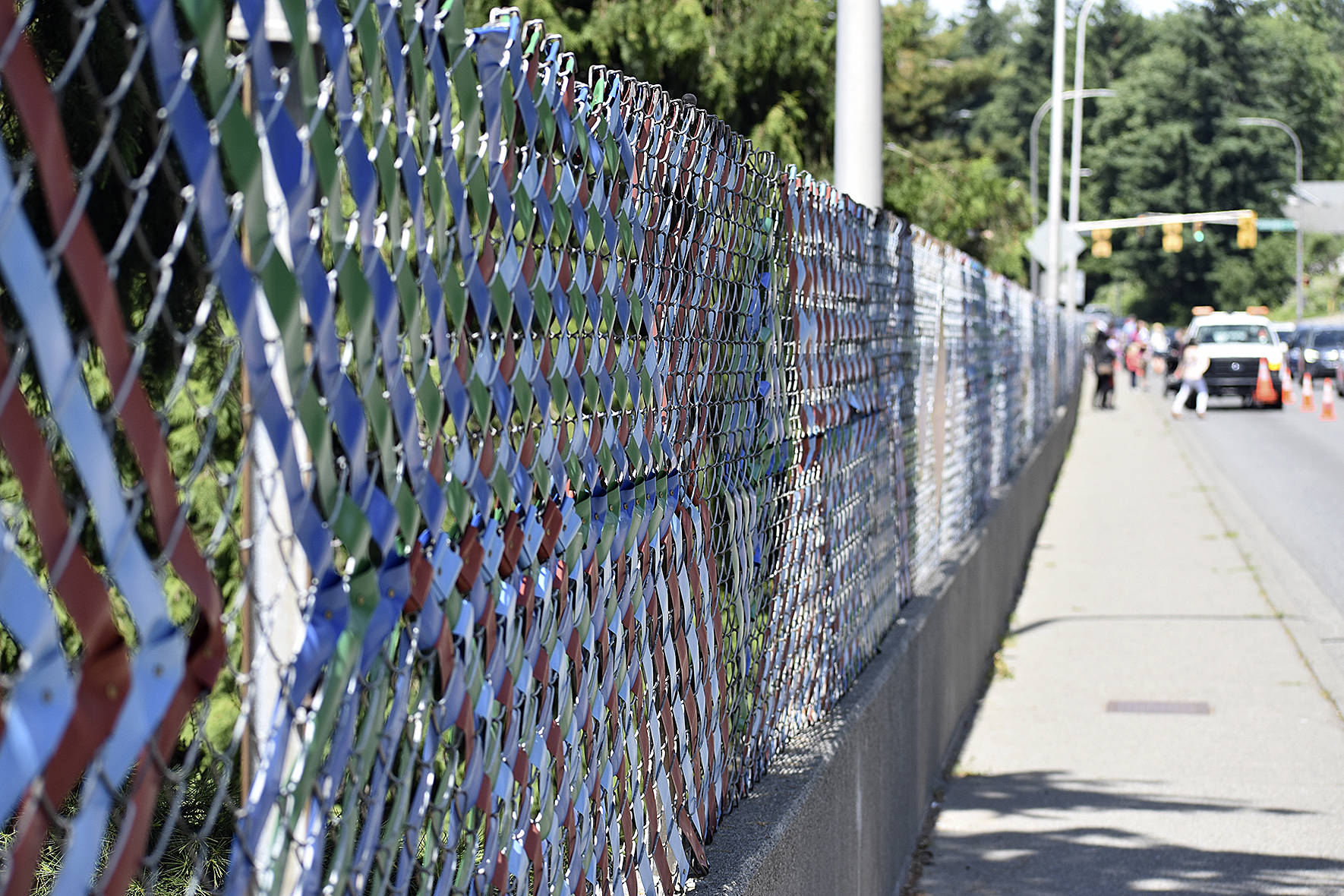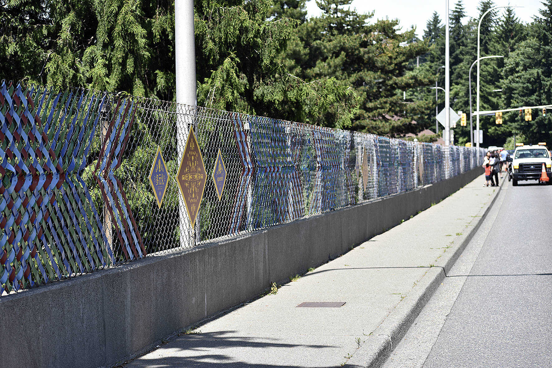 The city of Renton street maintenance staff closed the lane next to the fence to allow those at the dedication to safely walk along and photograph the new art.