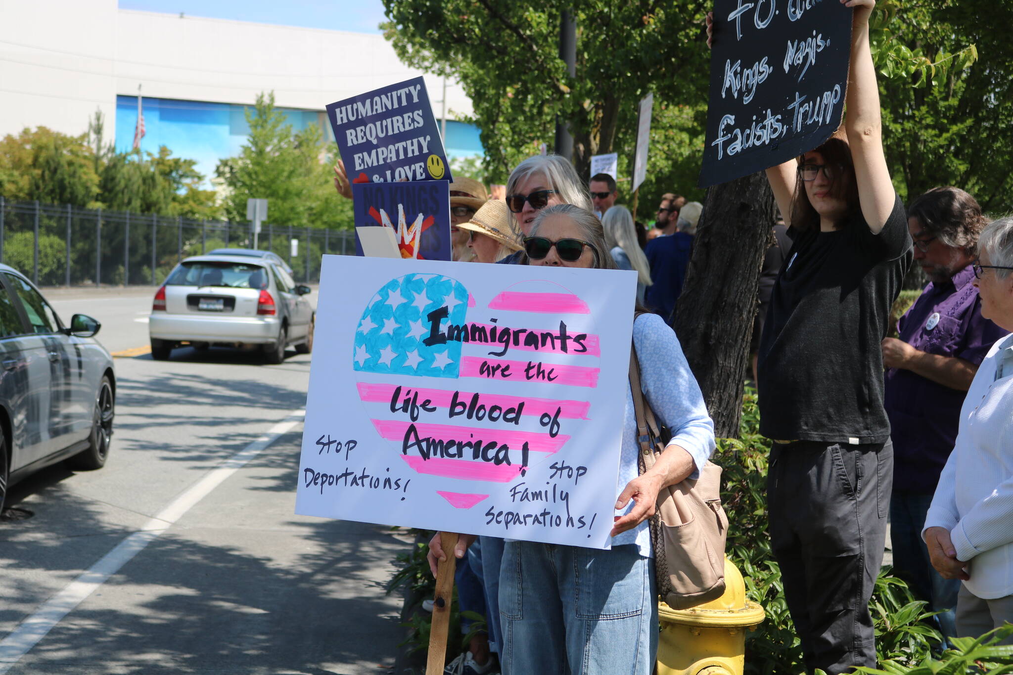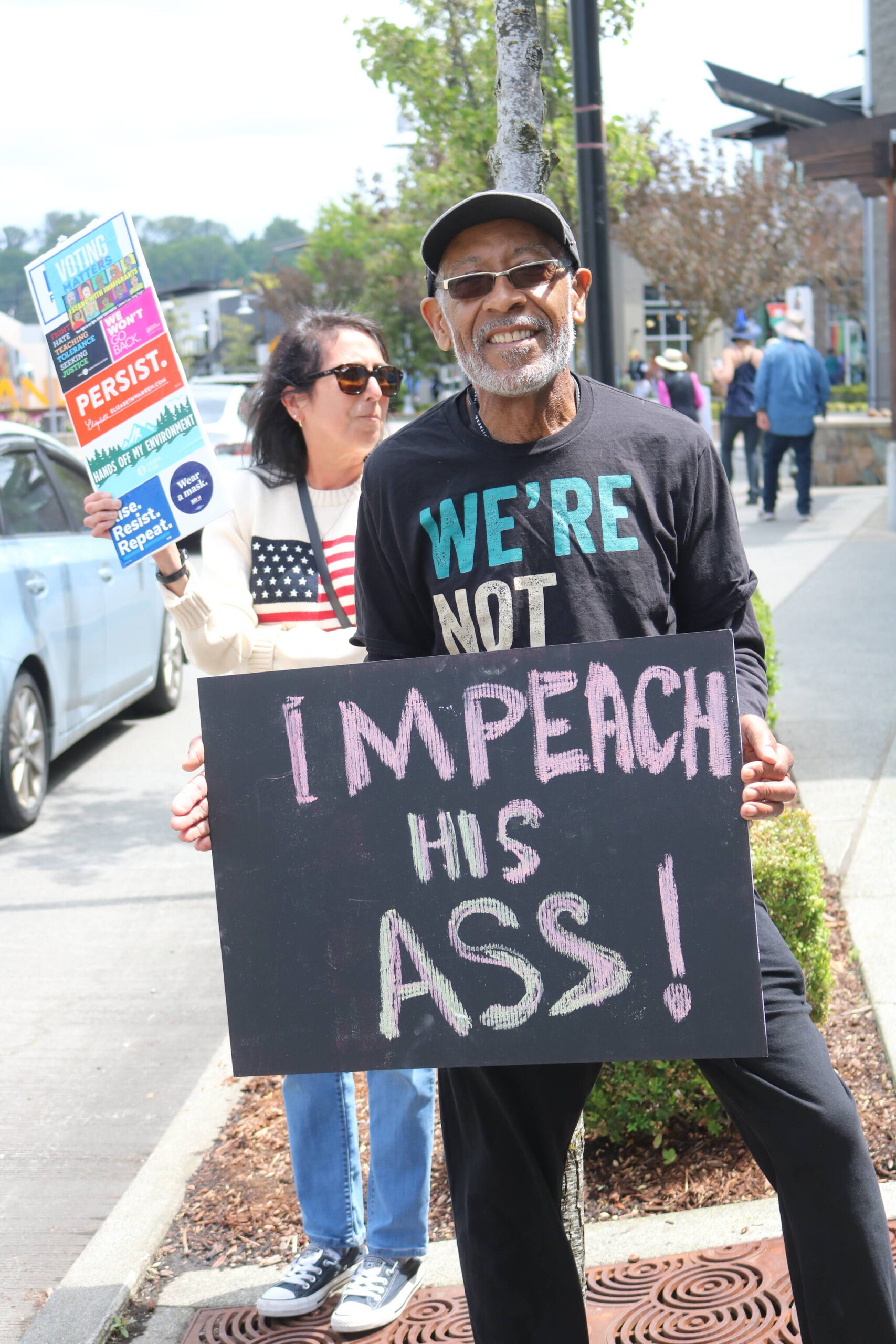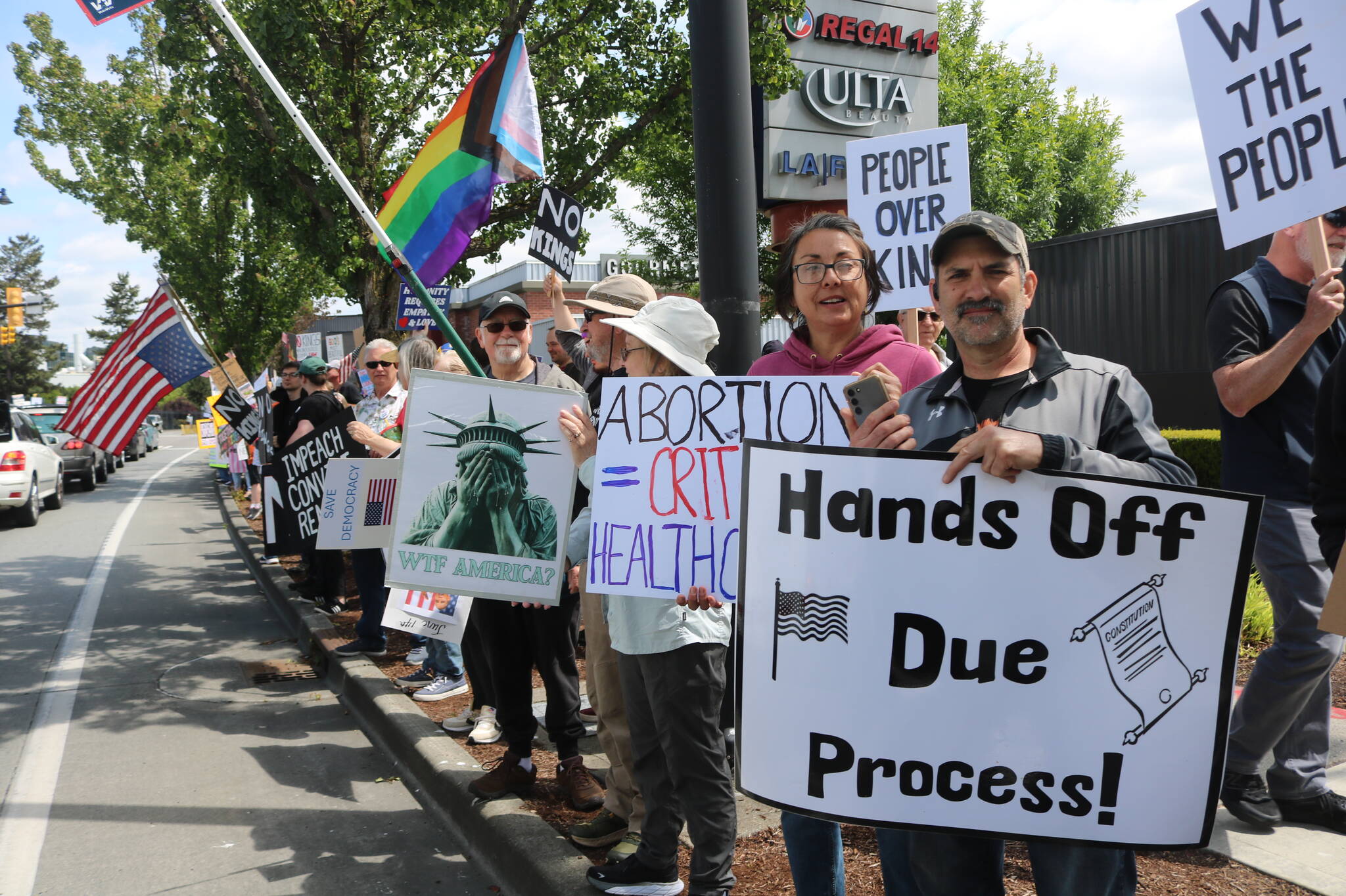“I went to ‘Hands Off’ in April and I’m here today because of all the horrendous things that are happening right now, at universities and with immigrants… everybody is touched in a pretty big way,” said Taletta Wibmer of Renton, who is also concerned for how the administration’s actions will affect her grandchildren. “I have disabled grandkids and there is no money for research or support for their lives. They have us now, but what happens when we die? Who will support them?”