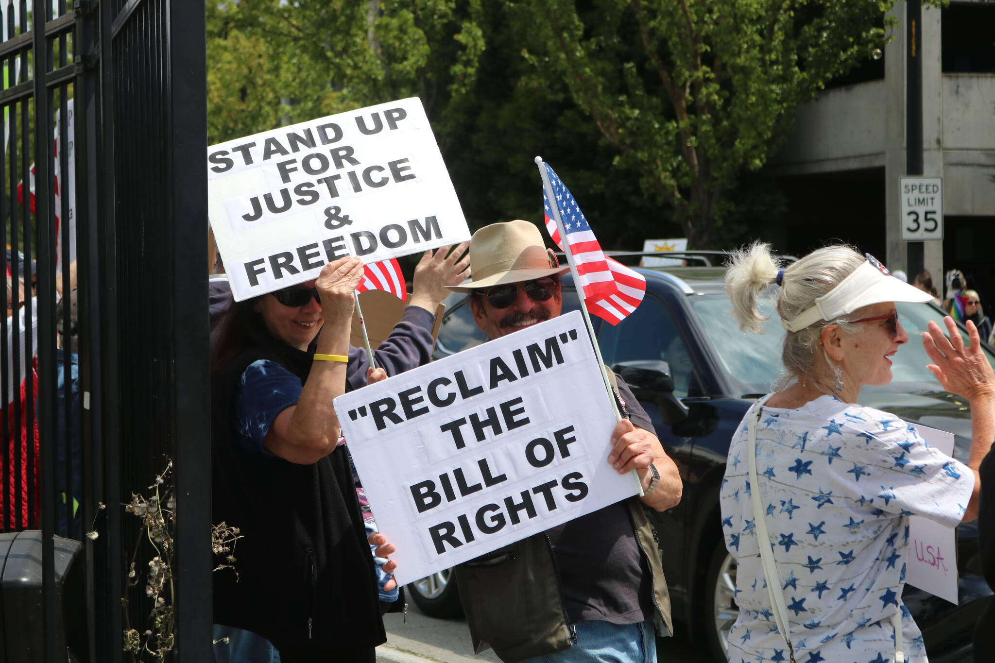 “I’m here for me and my wife and our first priority is to protect our civil rights,” she said. “I’m here because this is a corrupt administration. Hospitals will close, food support will go away like food banks. It’s hurting the people, especially lower income people.”