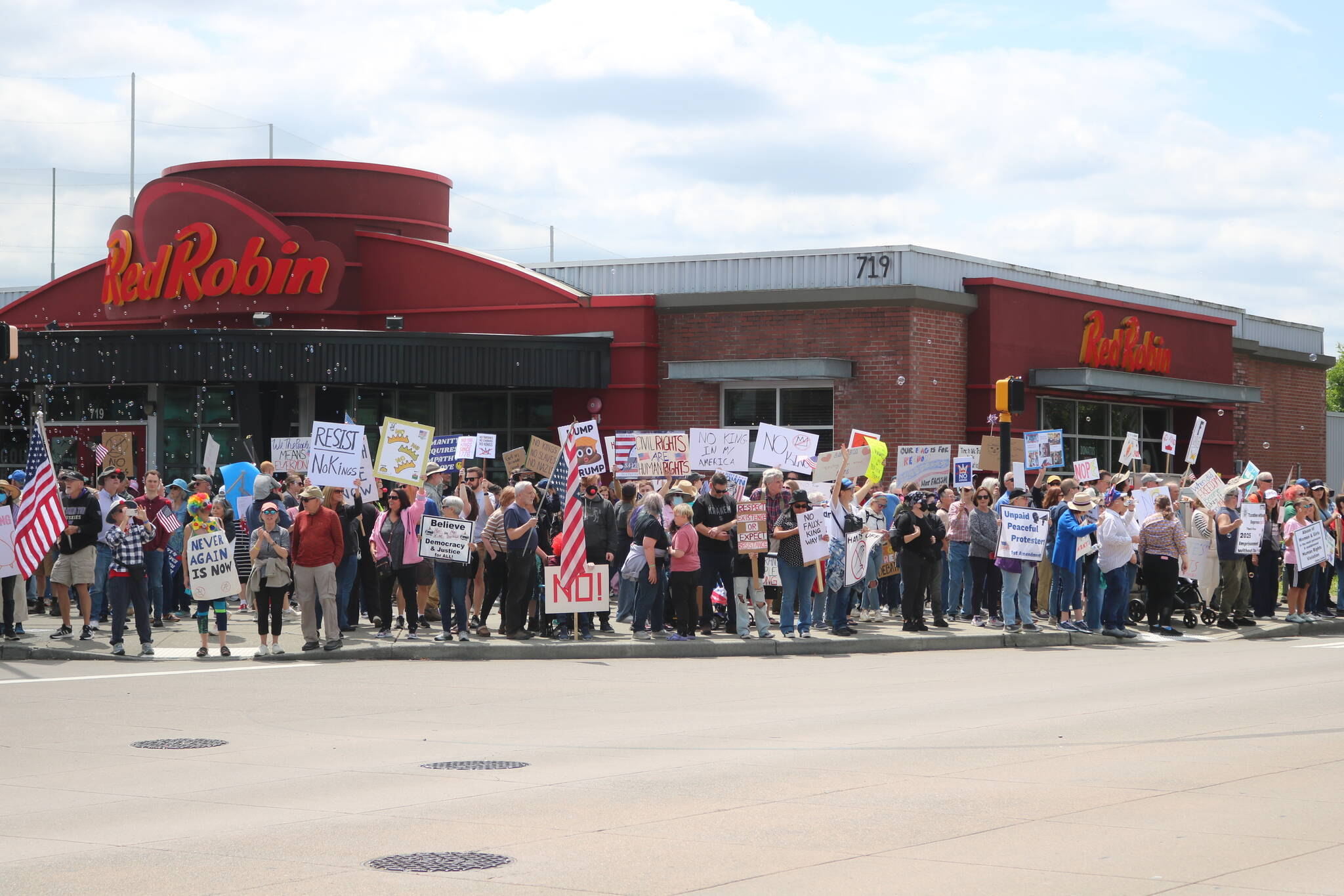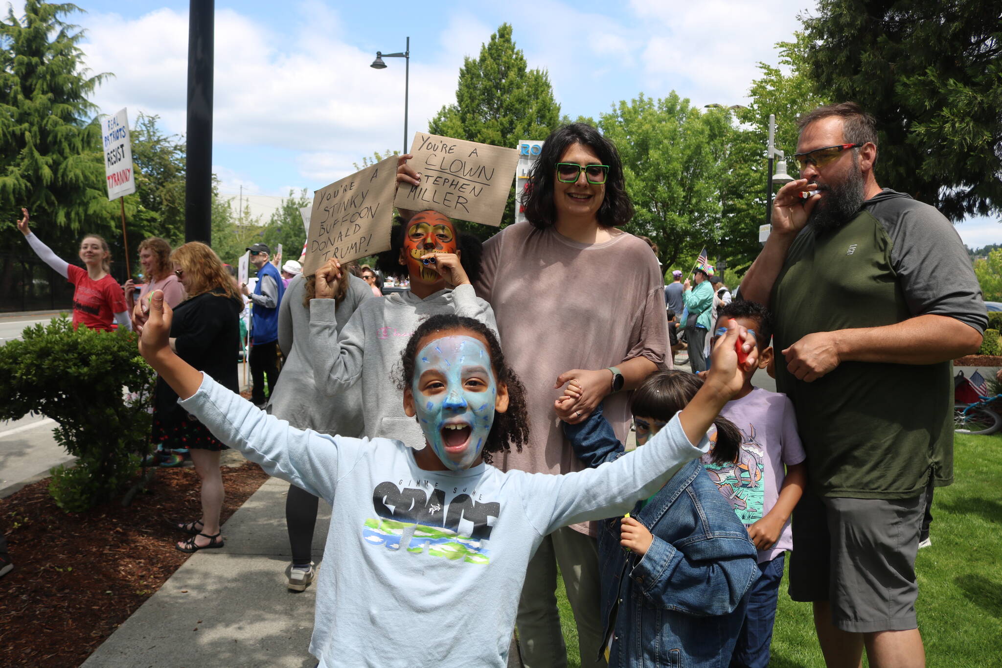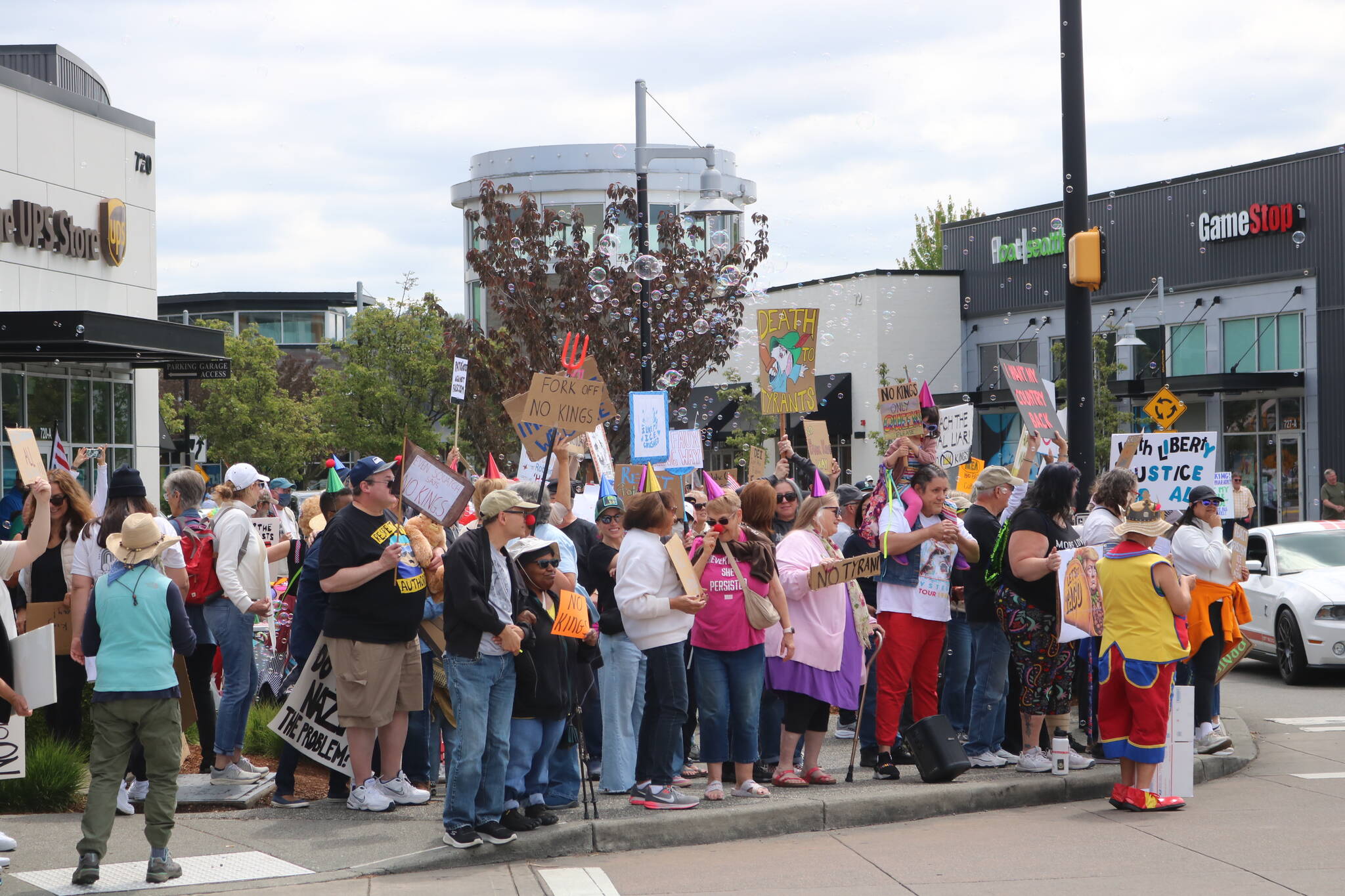 Covering one-third of a mile, from the Top Golf to the edge of the parking garage at The Landing, with the corners of Logan Avenue and North 10th Street serving as the nucleus, Renton held its “No Kings” protest where well over 5,000 people filled the sidewalks, adorned in clown noses, carrying signs and chanting in protest of the Trump administration.