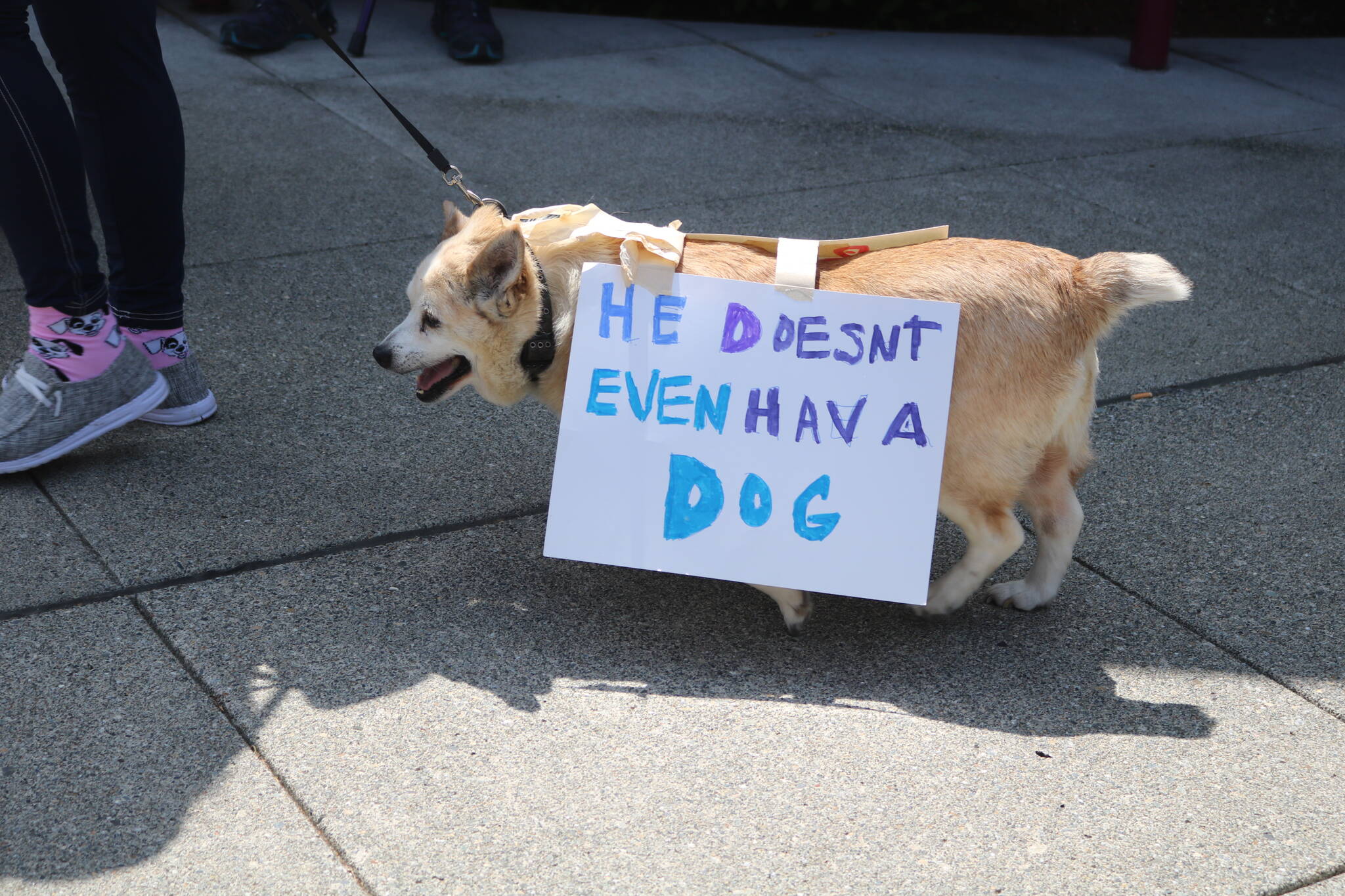 Over the course of the afternoon, the protest grew and grew, with the crowd reciting different chants, one speaker blasting “We’re Not Gonna Take It” by Twisted Sister and a never-ending stream of honks from passing cars, with one woman pulling up to the crowd and yelling, “We’ll join you as soon as we find a parking spot!”