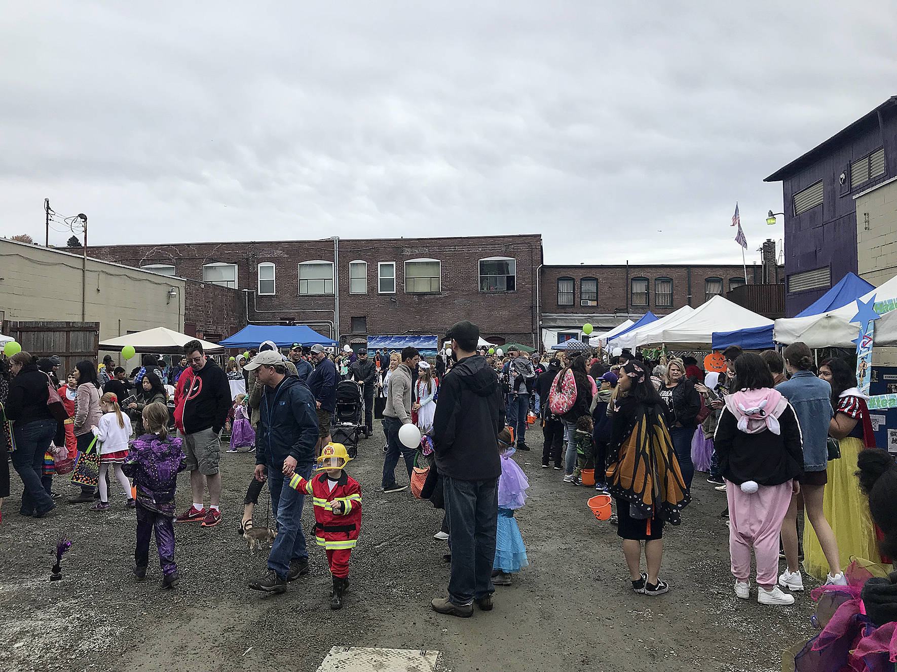 Downtown Renton hosted skeletons, legos, dinosaurs and more at the Olde Fashioned Halloween party Oct. 27. The event had downtown businesses engage in daytime trick-or-treating and a Scarecrow competition. The main event was in a festival area host to booths of games, coloring and more run by Renton and Hazen High School volunteers, the “Boo Crew.” The event also featured a dog costume contest.