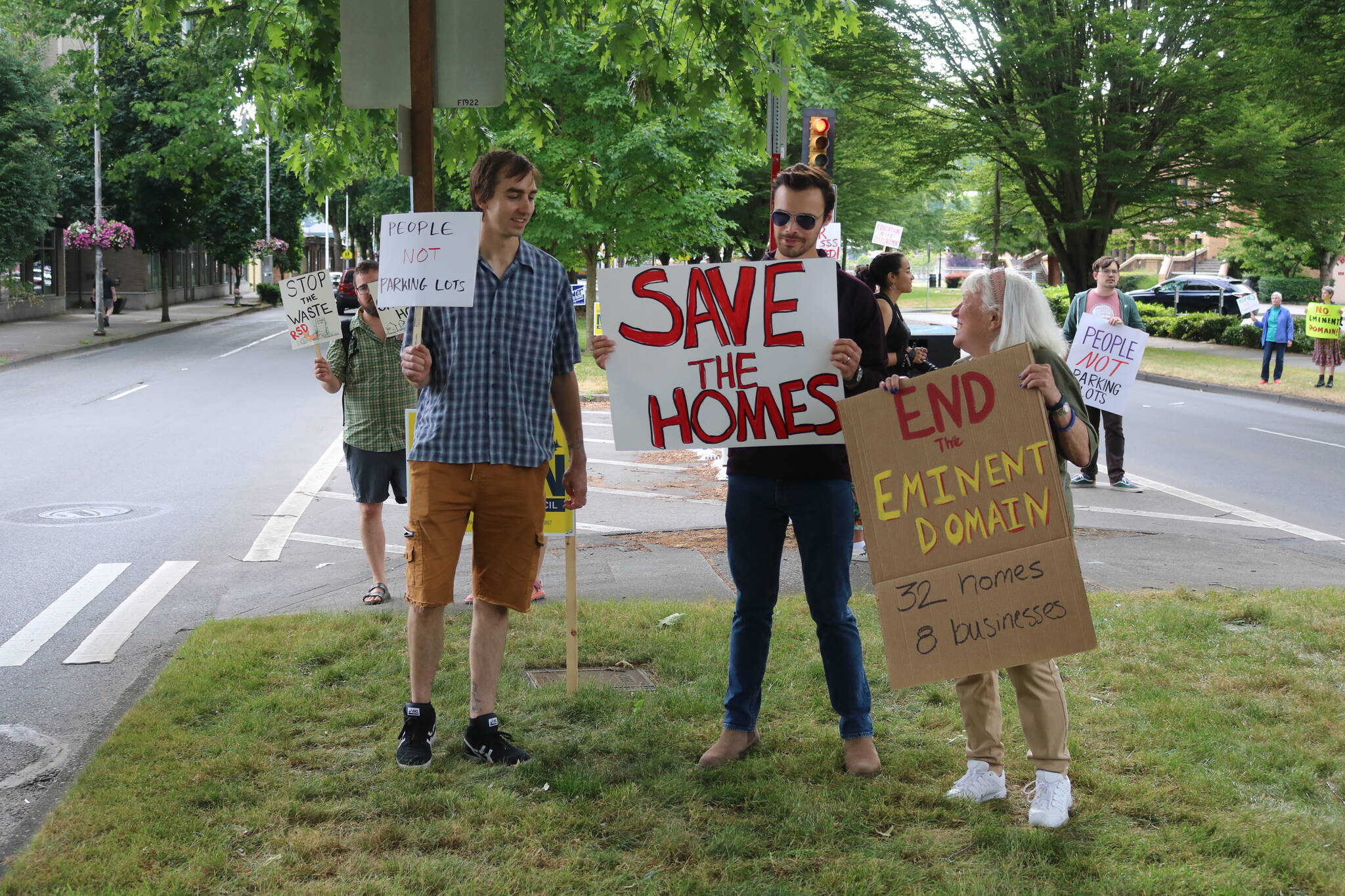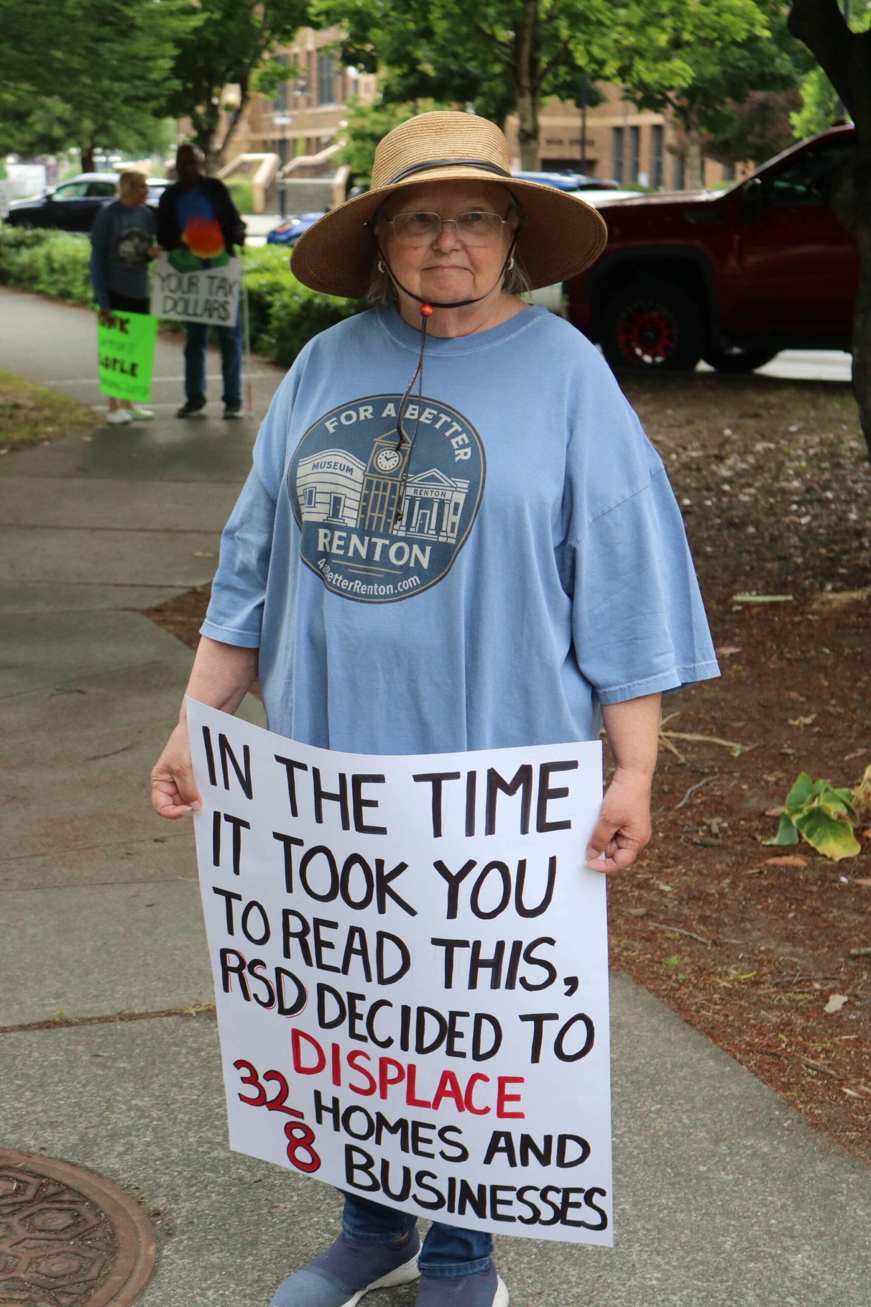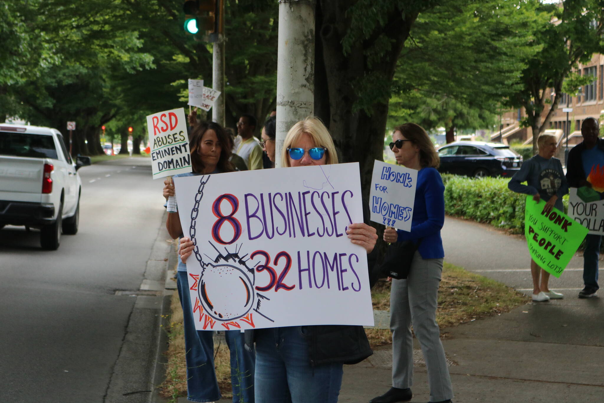 The protest included local community leaders like For A Better Renton president Sheryl Friesz and former Renton City Councilmember Marcie Palmer, who said that the issue of eminent domain had brought her to South 2nd Street that day.