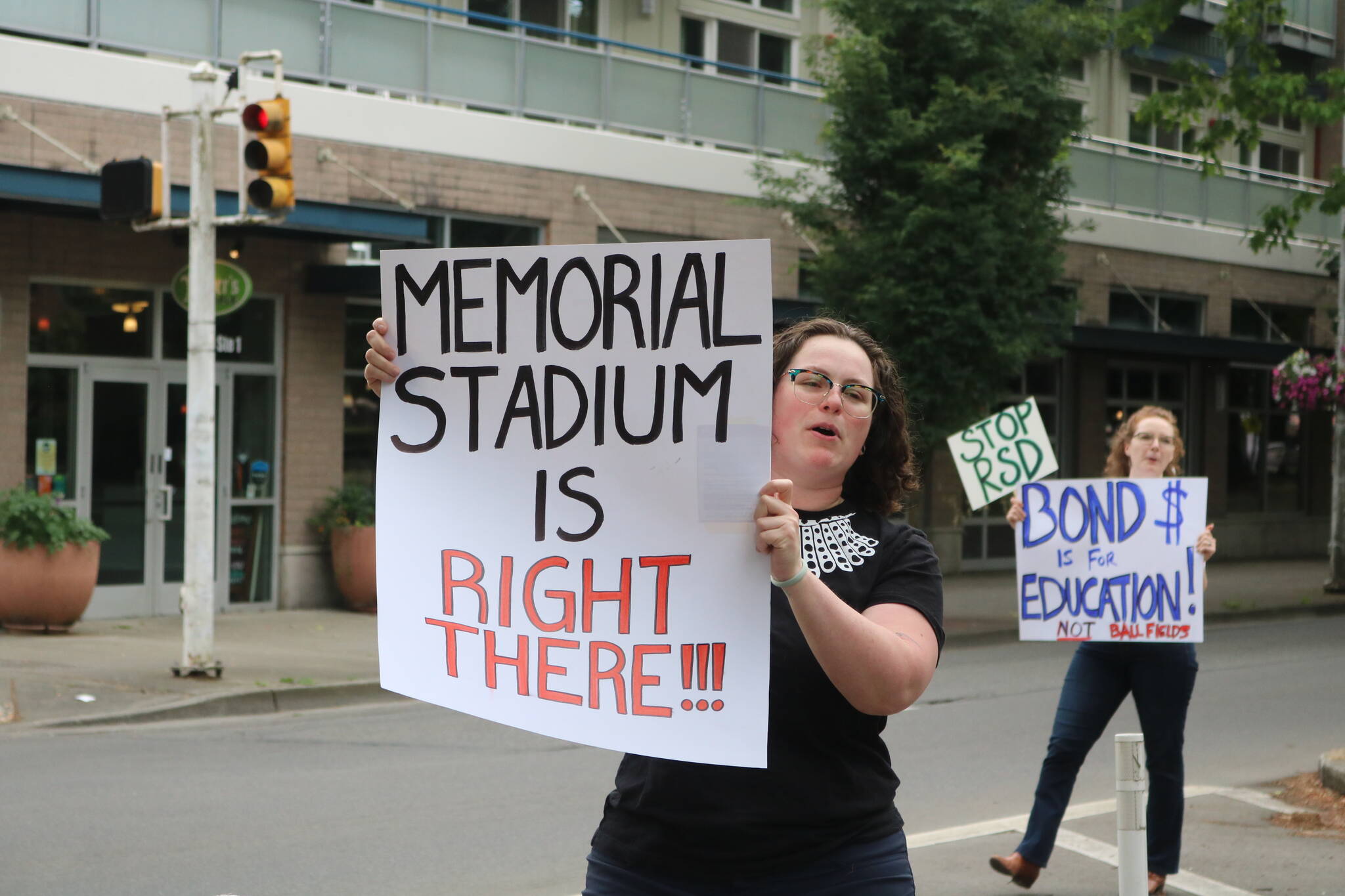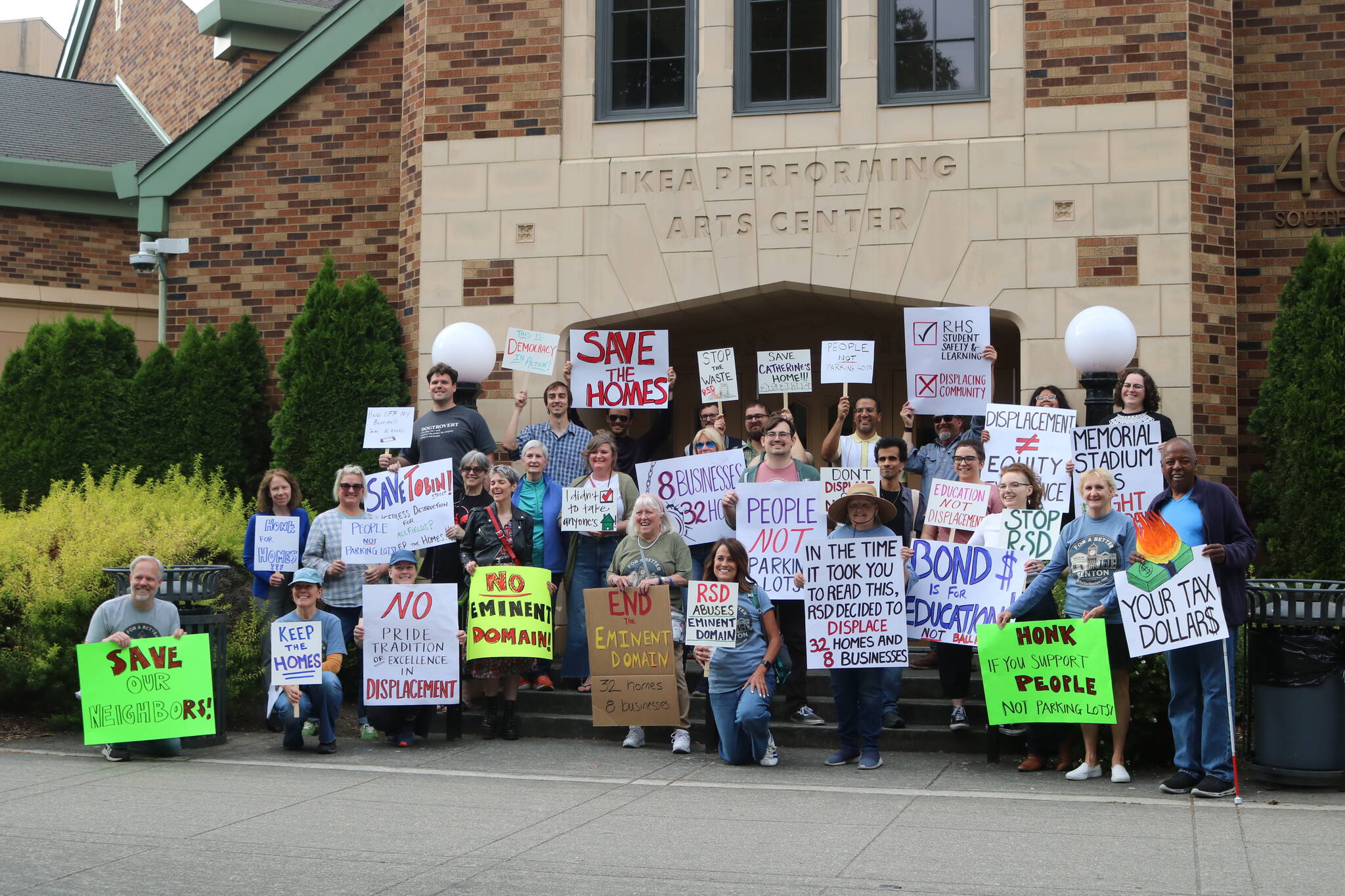 Two hours before the June 25 Renton School Board meeting, a protest took place outside the IKEA Performing Arts Center at Renton High School, where people with For A Better Renton held up signs, chanted and took signatures for their new petition, which calls to stop the expansion of Renton High School.