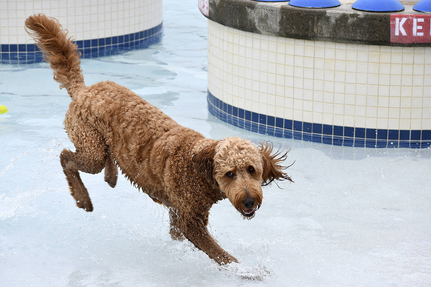 Photo by Haley Ausbun. The Henry Moses Aquatic Center wrapped up the season with a splash— from local pups! The Pooch Plunge gave dogs free reign of the lazy river and wave pool, Saturday, Sept. 7 2019.
