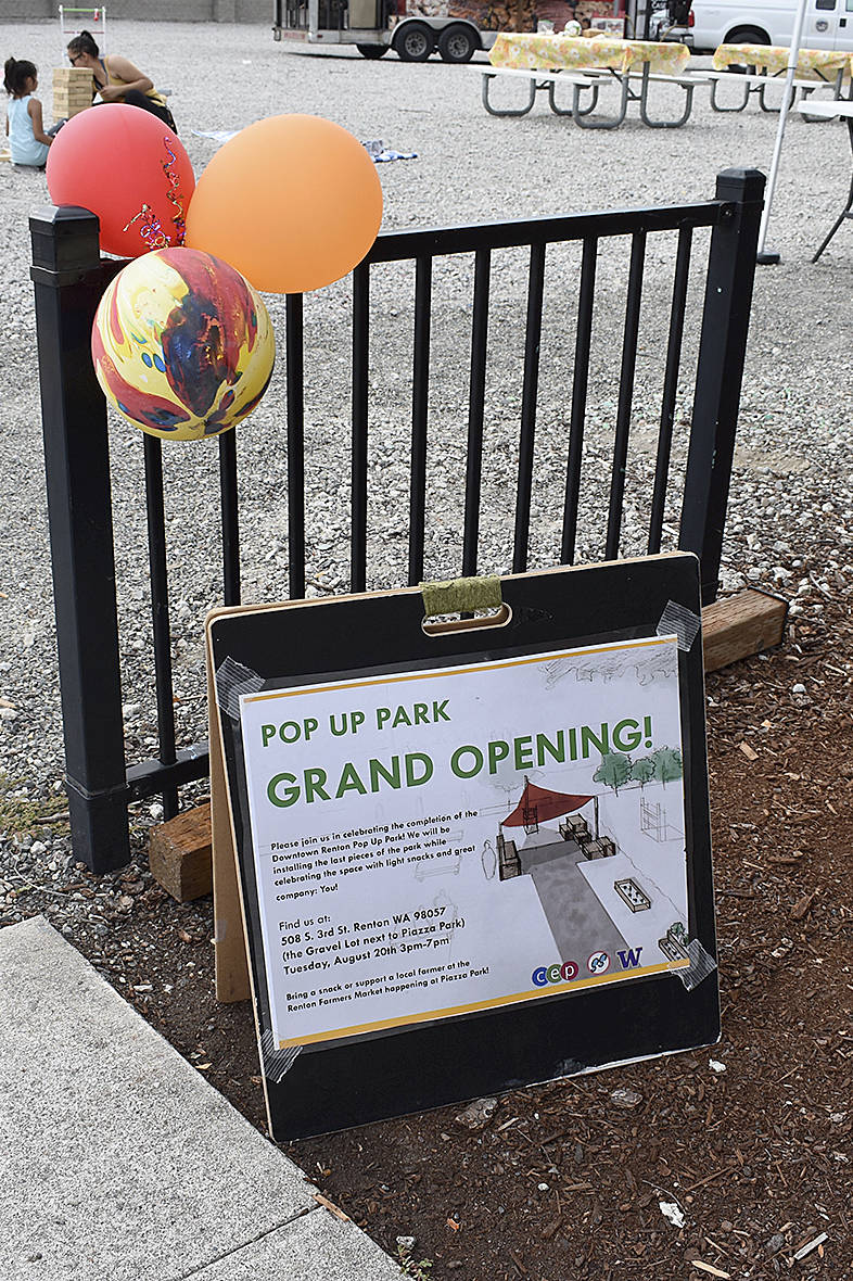 Renton held the grand opening of a pop-up park on Tuesday, Aug. 20 at the gravel lot along Third Avenue South, which is set to remain until the end of Renton Farmers Market.