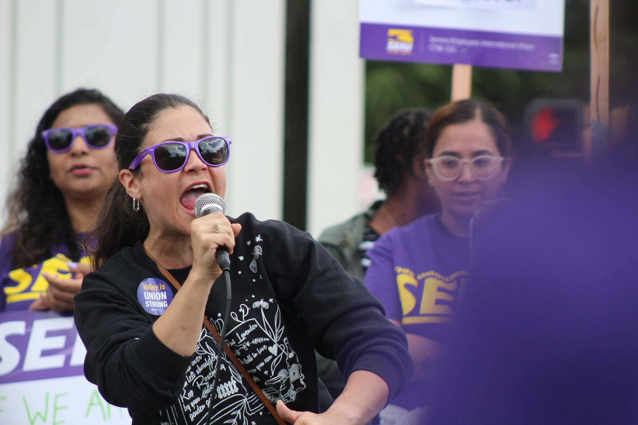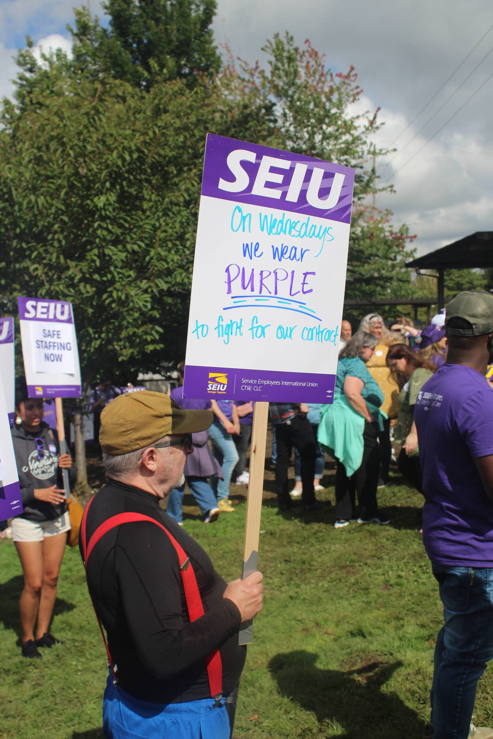 “Our fight today is about our values. We believe that healthcare workers need to have sick time. We believe that healthcare workers need to have good wages. We believe that when we’re united, we get what we need,” she said.