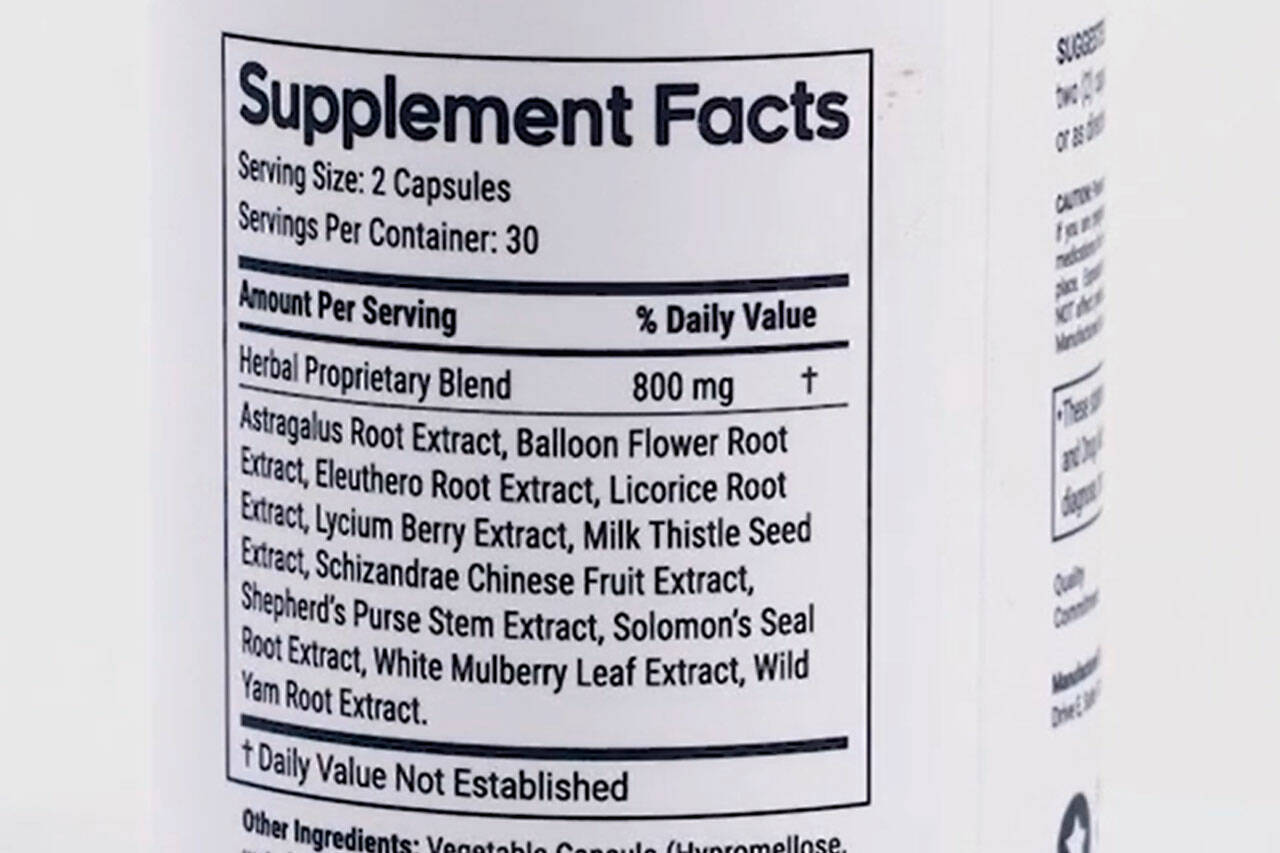 800mg of the Plantsulin Herbal Proprietary Blend with astragalus root extract, balloon flower root extract, milk thistle seed extract, schizandra Chinese fruit extract, shepherd’s purse stem extract, Solomon’s seal root extract, eleuthero root extract, licorice root extract, Lycium berry extract, white mulberry leaf extract, and wild yam extract