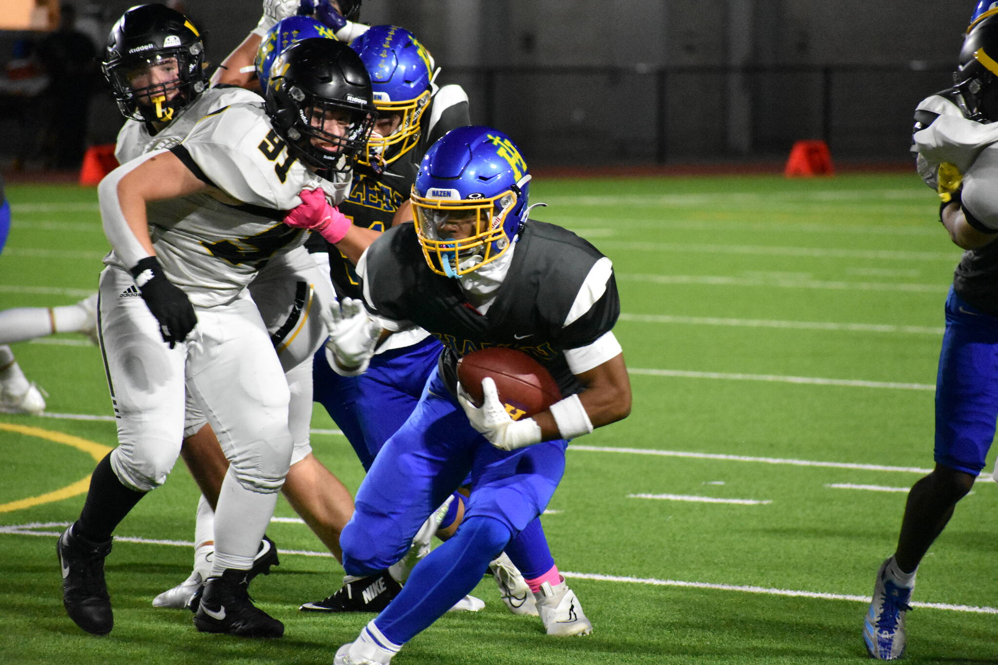 Hazen’s defense held strong while the offense was still stuck in a slumber. Inglemoor’s defensive line was causing problems all night for the Hazen offense.