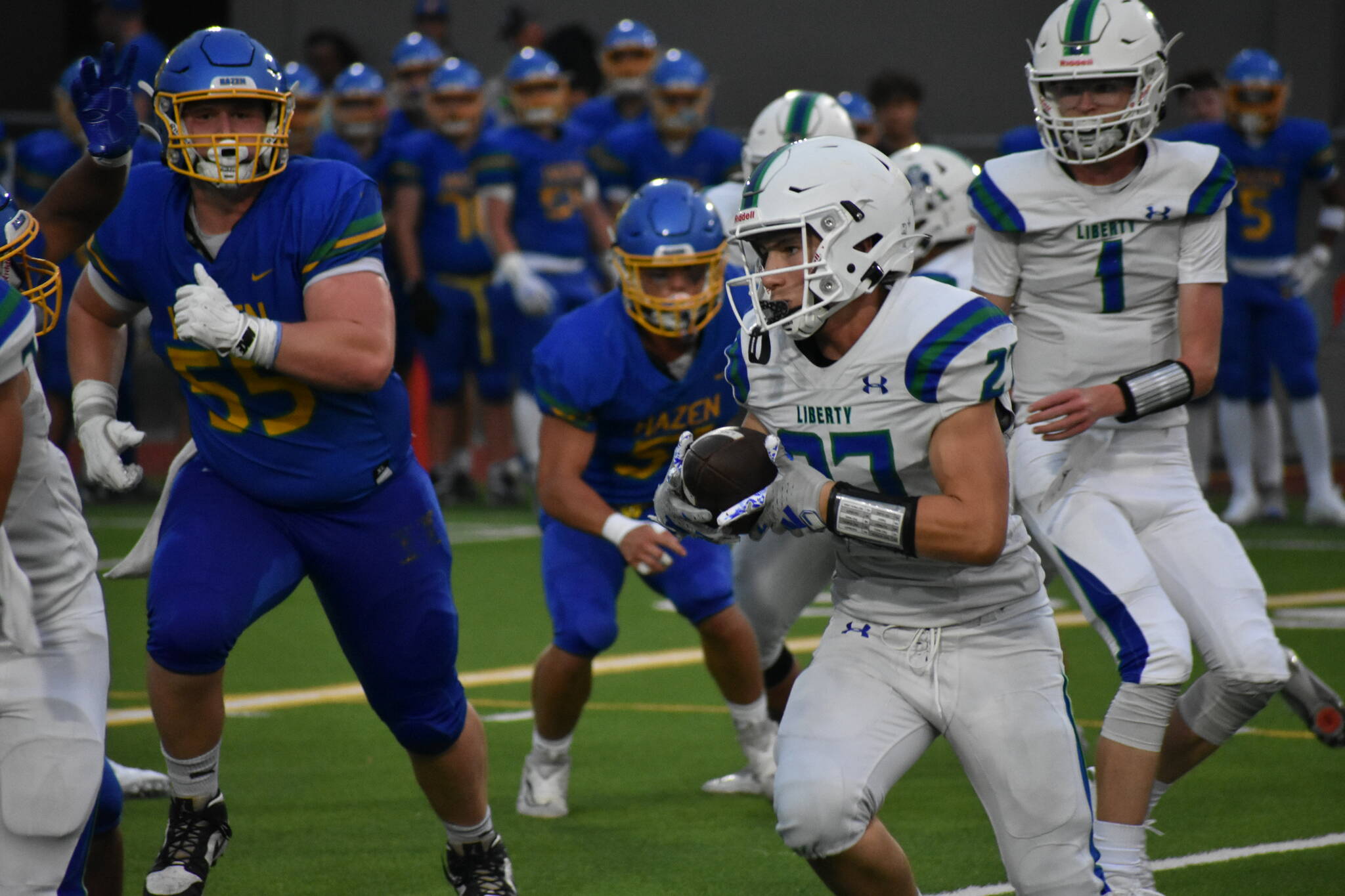 From the first play of scrimmage, Liberty’s gameplan was on another level against Hazen. The defense that allowed 27.8 points per game last season silenced the Wing-T offense.