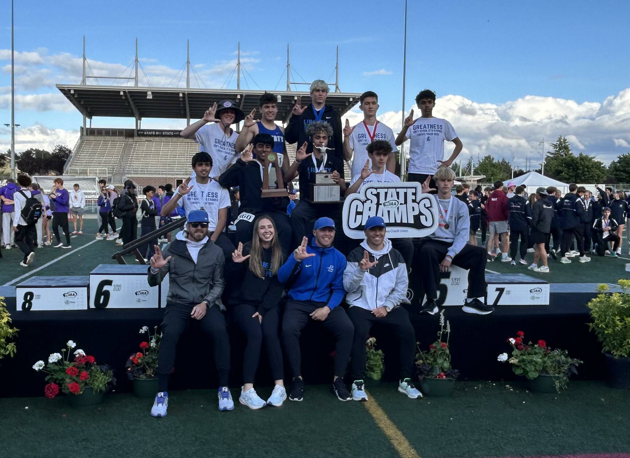 After Tayler Conway (tennis), Calvin Cakarnis (golf) and the fastpitch team won state titles last week, Liberty boys track took home first place at the WIAA State Track and Field Championships from May 29-31.