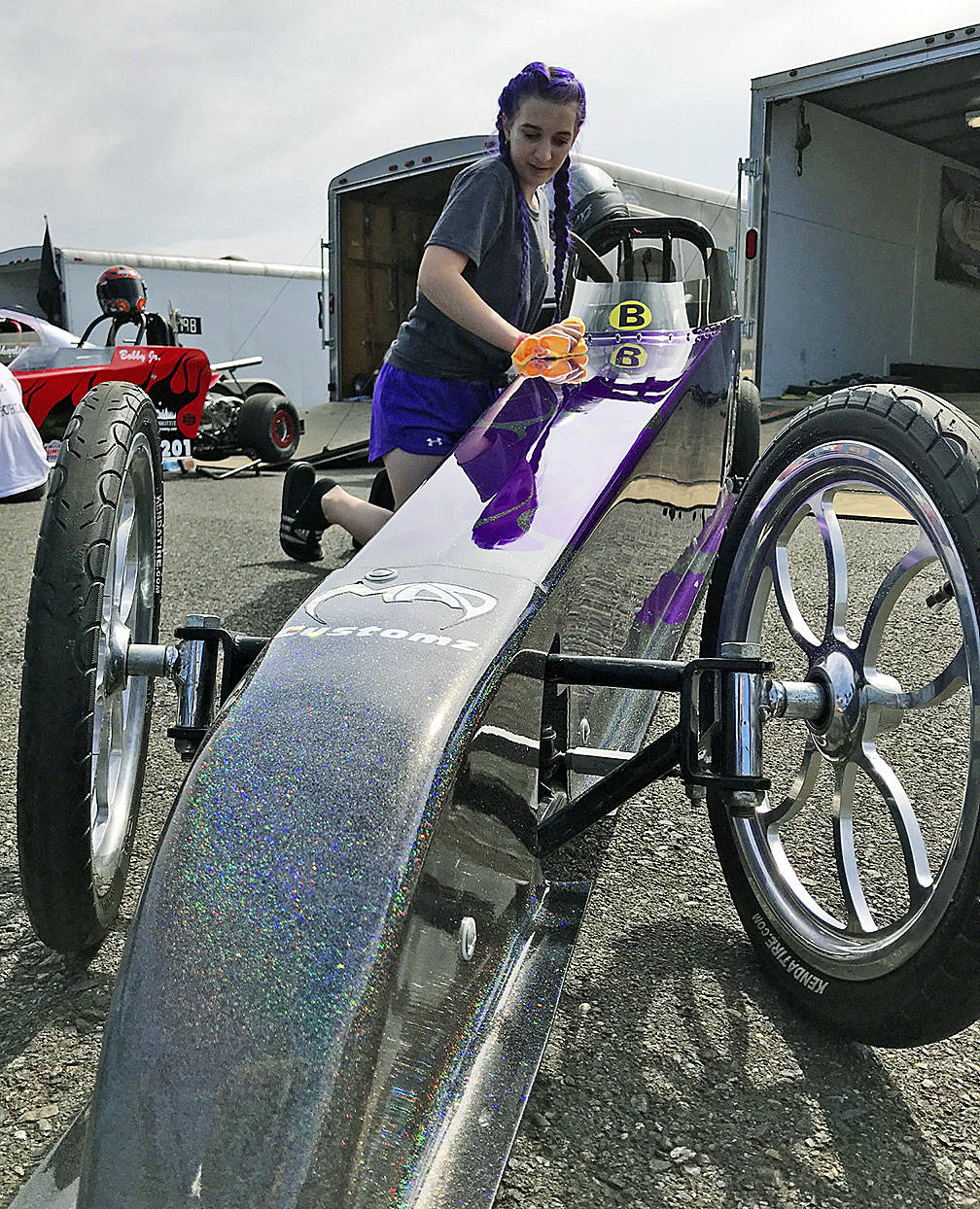 “It’s fun. It’s the feeling of having the power,” said the 14-year-old Port Orchard girl, moments before her qualifying run at the inaugural Mark Lyle Junior Invitational at sun-doused Pacific Raceways in Kent last Saturday. “When the (starting) light goes on and you’re off, it’s hard to pick yourself back up in the seat because you get pushed back into it from all the force. And I love that feeling. It’s so cool.”